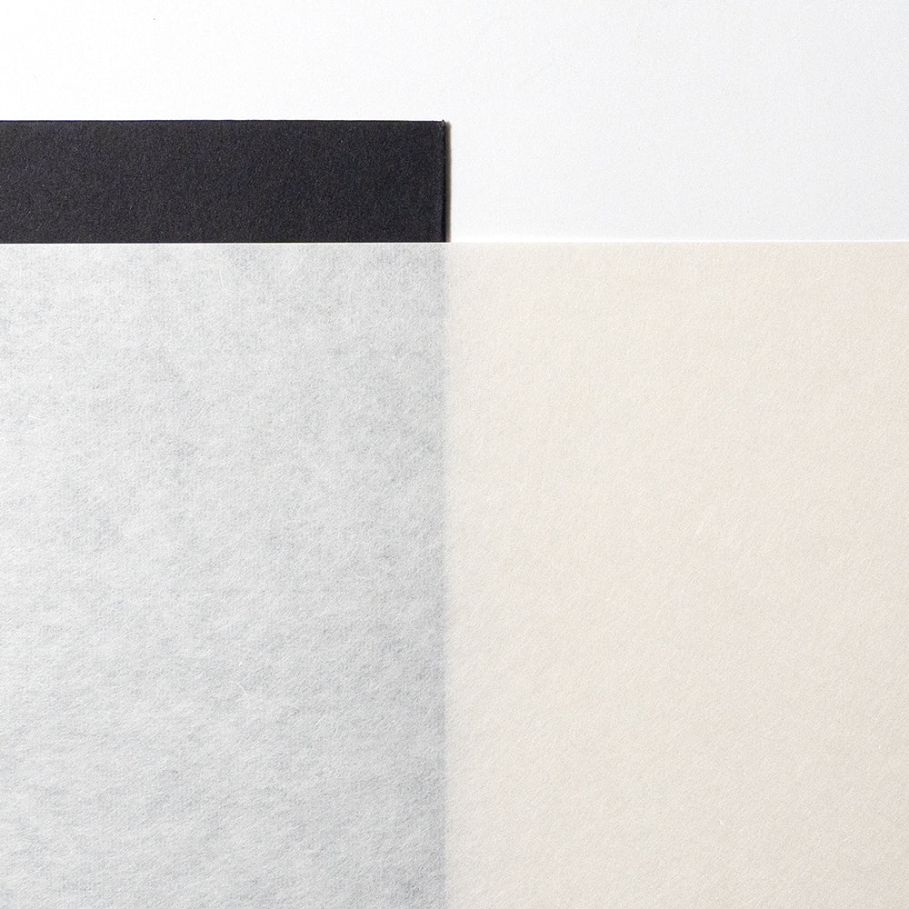 楮は和紙の三大原料の一つで、強い繊維で作業性に大変優れている原料です。強靭で破れにくい性質があり、多様な用途にあった、使い勝手の良い機能的な紙です。他の原料に比べて楮の繊維は太く長く、最も和紙らしい風合いがあります。リトグラフ、銅版画、シルクスクリーン、木版画(水性・油性)に適しています。