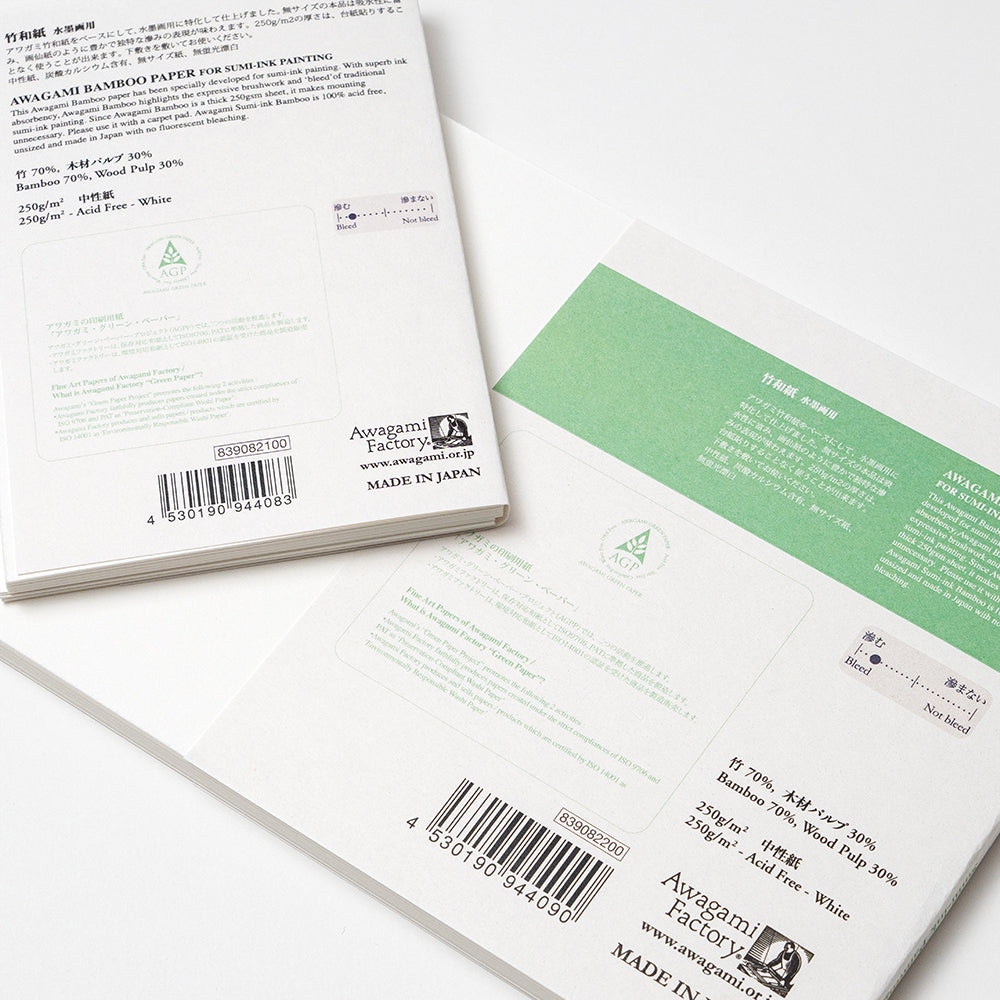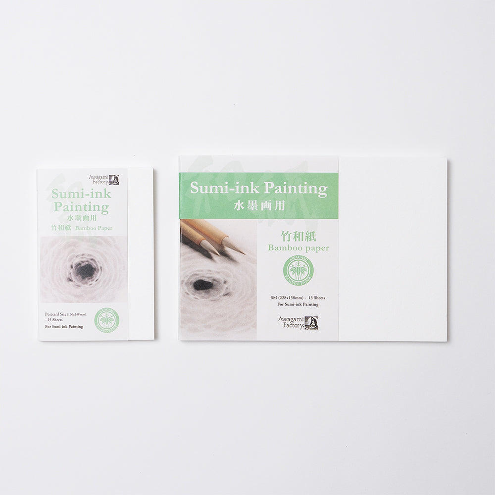 原料に竹の繊維を使用し、墨の吸収の良さと表面の表情を重視した、水墨画専用の和紙を使いやすいサイズのセットにしました。