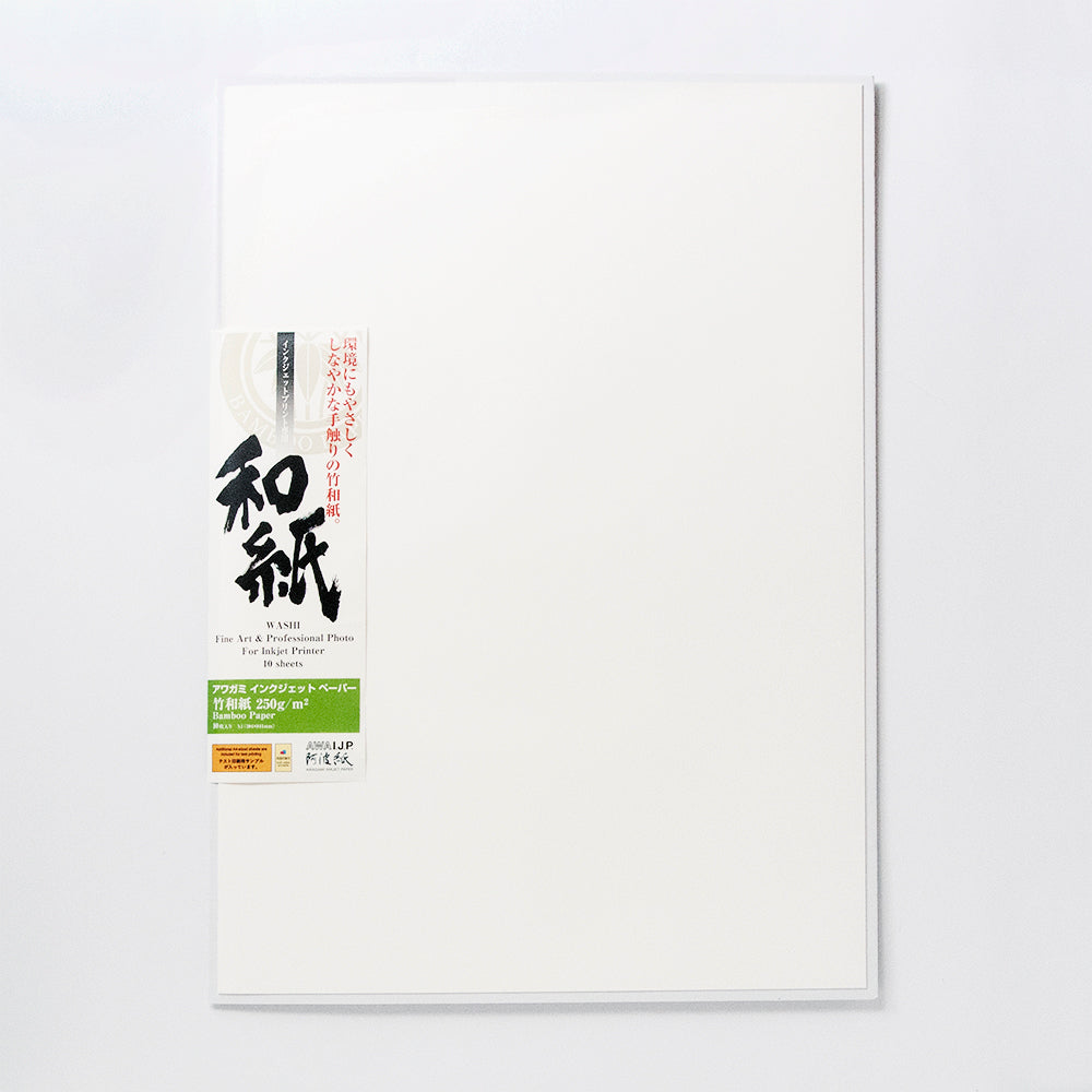環境に優しい「竹」を原料にし、絹のような手触りと、コットン紙よりもふんわりと柔らかな風合いに仕上げました。密度も高く、厚みがあり透過しにくく、重量感・高級感のある作品に仕上がります。白色度も高く、色を素直に再現することでは定評があります。その質感から、ポートレートの写真やイラストの印刷、ミクストメディアなどに推奨しています。※こちらの商品は両面印刷可能です。