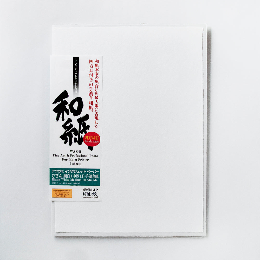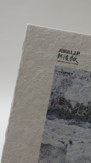 職人が一枚ずつ作った、デジタル印刷用の手漉き和紙です。四辺に「耳」があり、和紙本来の風合いを最大限に表現しています。厚手の紙で、額装することなくそのまま作品として展示できます。写真や絵画の印刷、ミクストメディアなどに適しています。