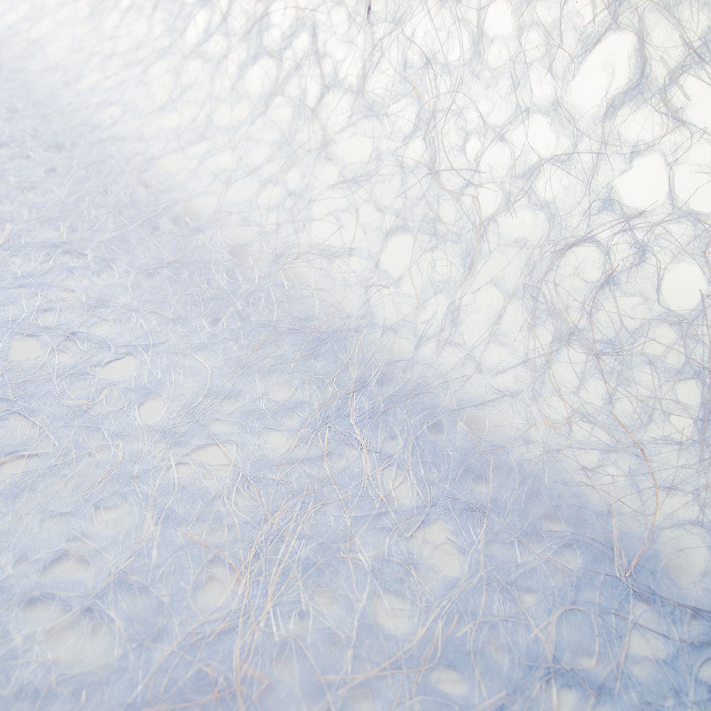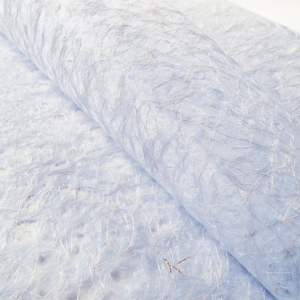 麻の繊維は、自然な光沢感があり、穴を開けることで、涼しげな印象の紙に仕上がっています。透ける利点を活かし、あかりや、障子、ガラス貼りなどのインテリアに、また、花材やボトル等のラッピングには中身が透けてきれいです。四方耳切。薄紫。全14色。※こちらの色は半裁サイズになります