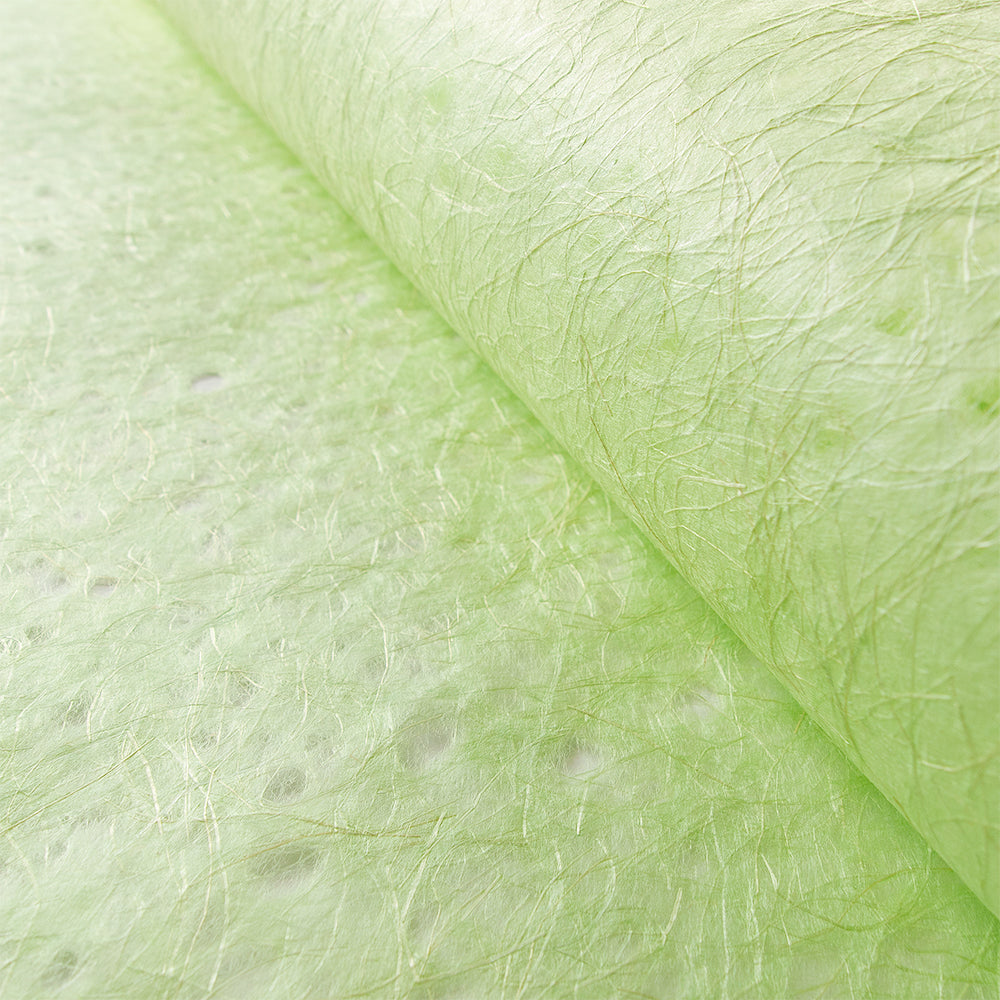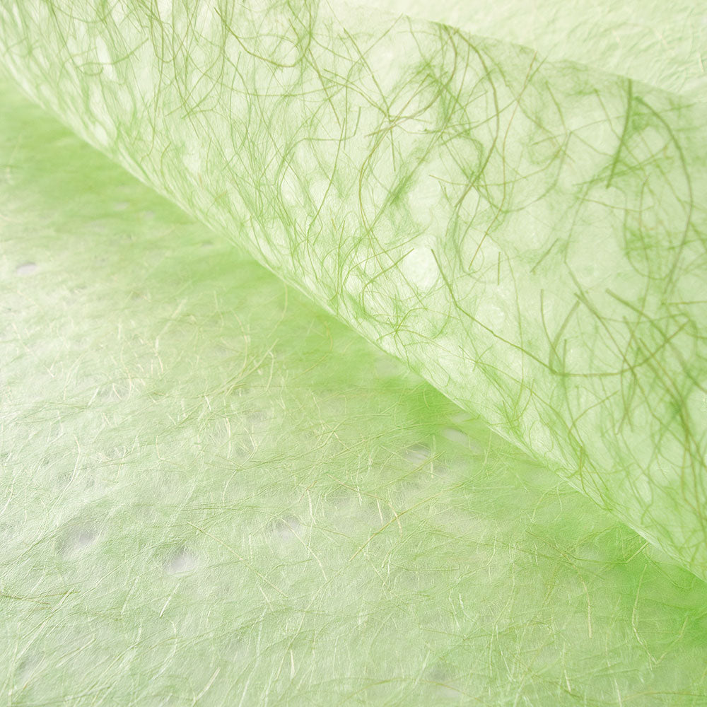 麻の繊維は、自然な光沢感があり、穴を開けることで、涼しげな印象の紙に仕上がっています。透ける利点を活かし、あかりや、障子、ガラス貼りなどのインテリアに、また、花材やボトル等のラッピングには中身が透けてきれいです。四方耳切。黄緑。全14色。※こちらの色は半裁サイズになります