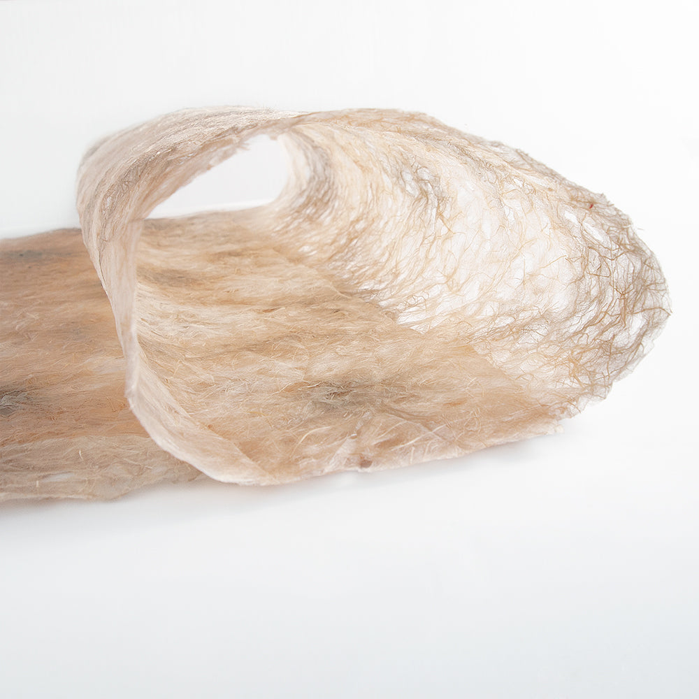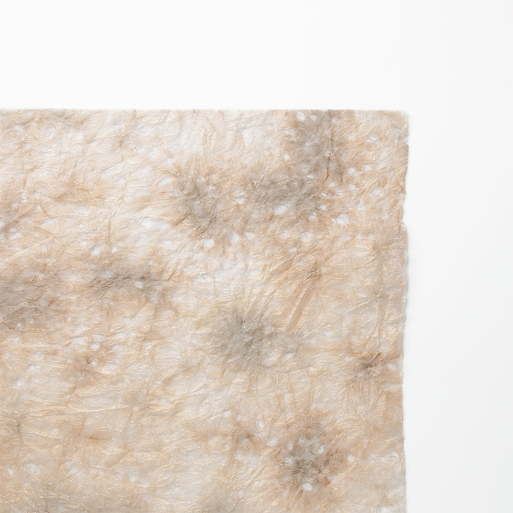 麻の自然な光沢感と、穴を開けることで涼しげな印象を与える「麻落水紙」を、もみ染めにしました。
