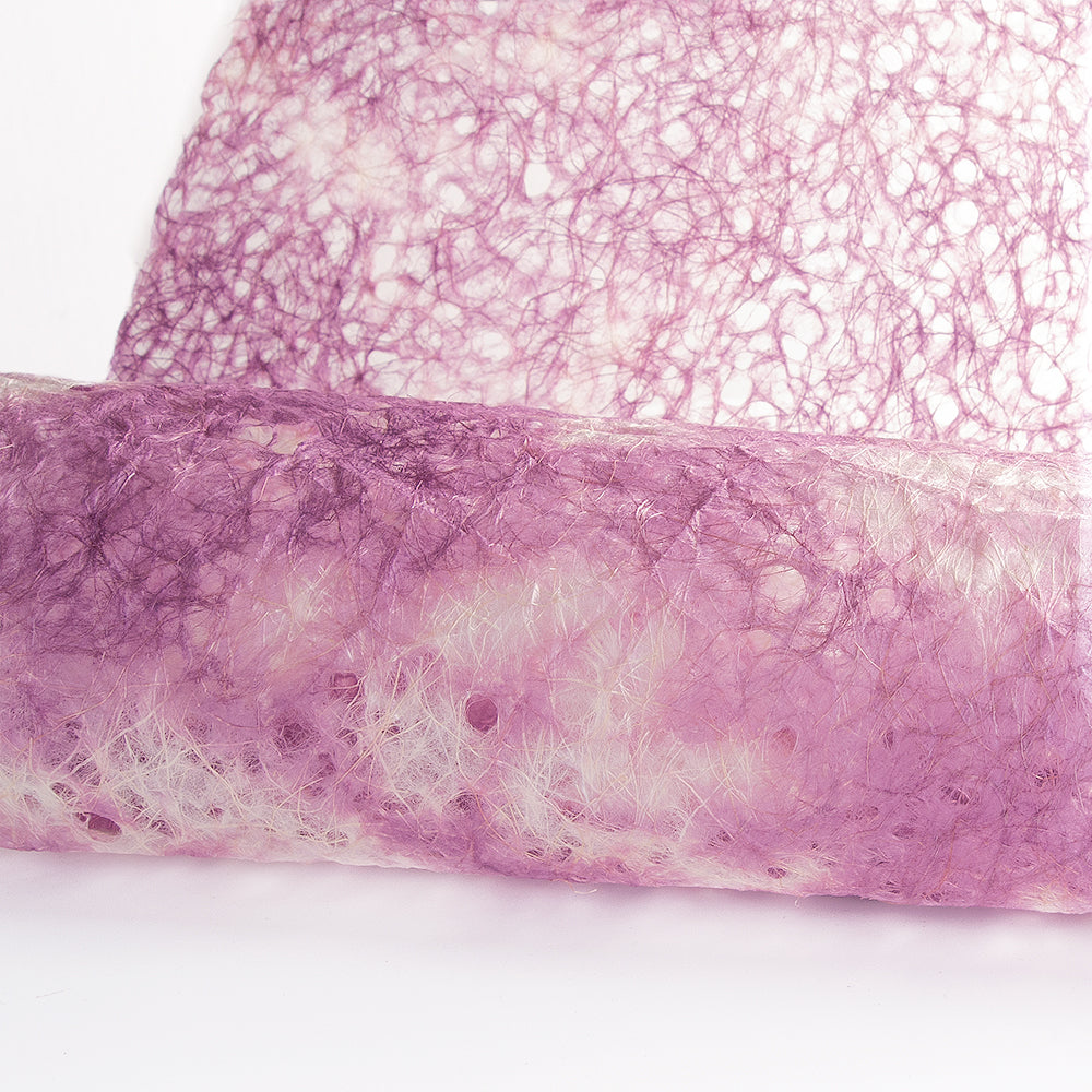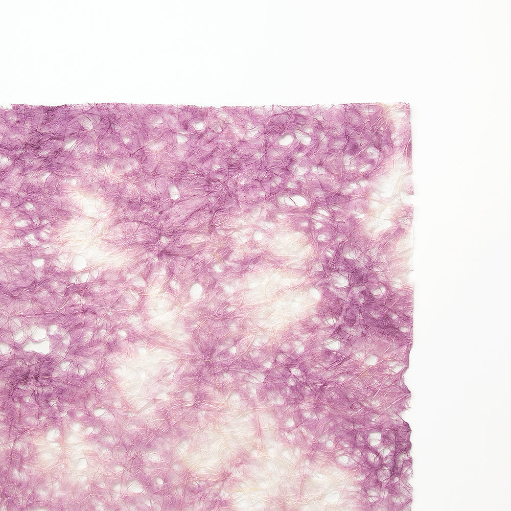 麻の自然な光沢感と、穴を開けることで涼しげな印象を与える「麻落水紙」を、もみ染めにしました。