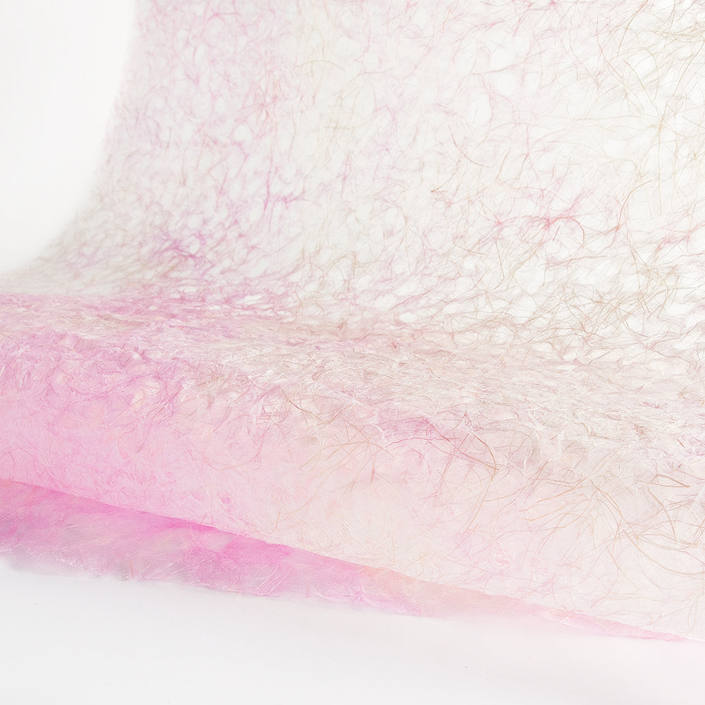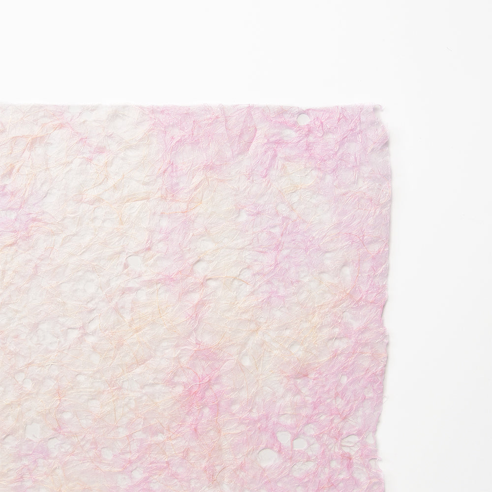 麻の自然な光沢感と、穴を開けることで涼しげな印象を与える「麻落水紙」を、もみ染めにしました。