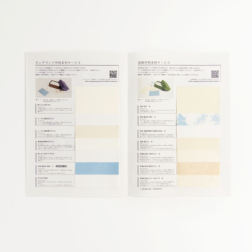 和紙の名刺の質感や風合いを、実際にお確かめいただける見本帳です。