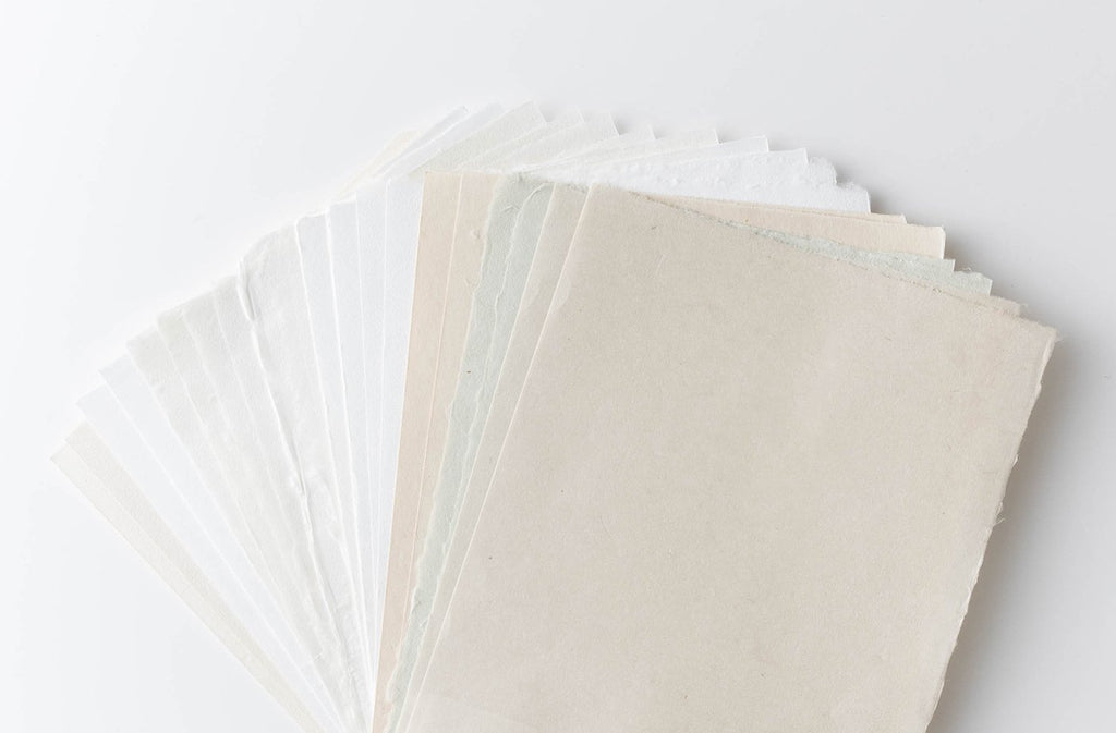 伝統的な和紙の主原料のほか、竹やコットンなどの非木材繊維も多用し、素材の違いによる豊かな表情と風合い、そして和紙特有の四方の耳には作品の完成度をより高める魅力があります。