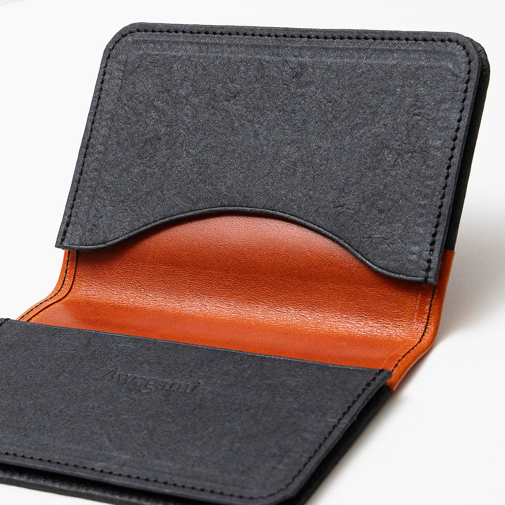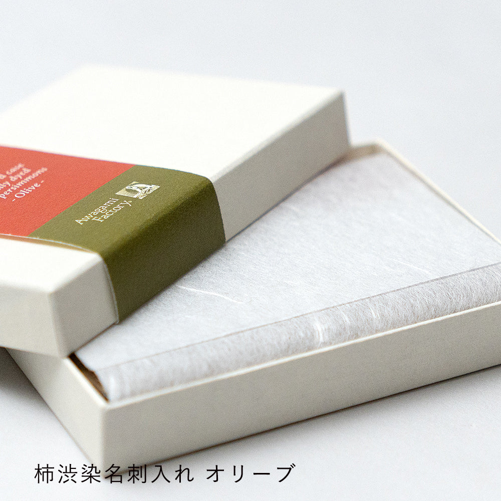 楮と麻を主原料とした手漉き和紙を柿渋で染め、名刺入れに仕立てました。