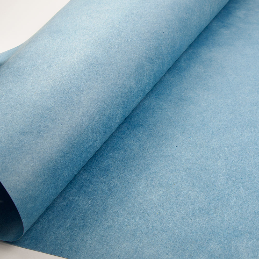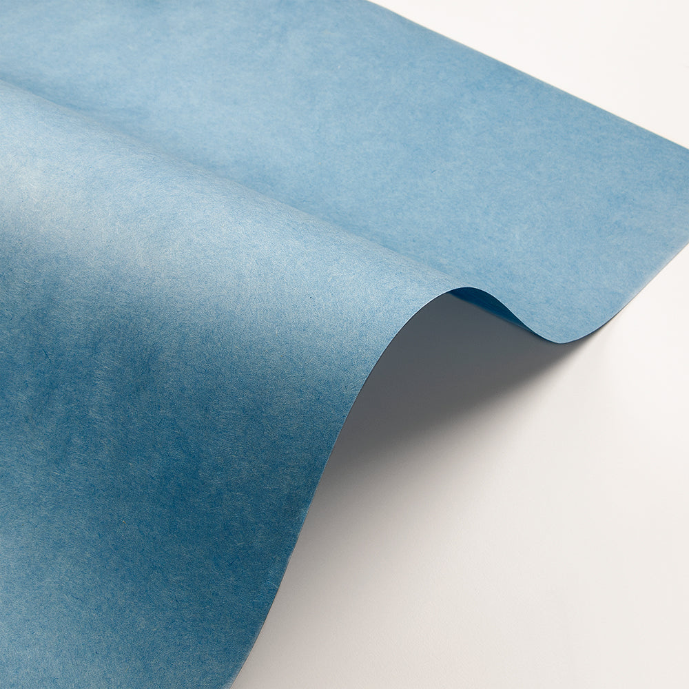 耐光性の高い染料で、靭皮繊維である楮(kozo)とフィリピン雁皮(Fillipino gampi)をあさぎ色に染め、ゆっくりと抄き上げた和紙です。