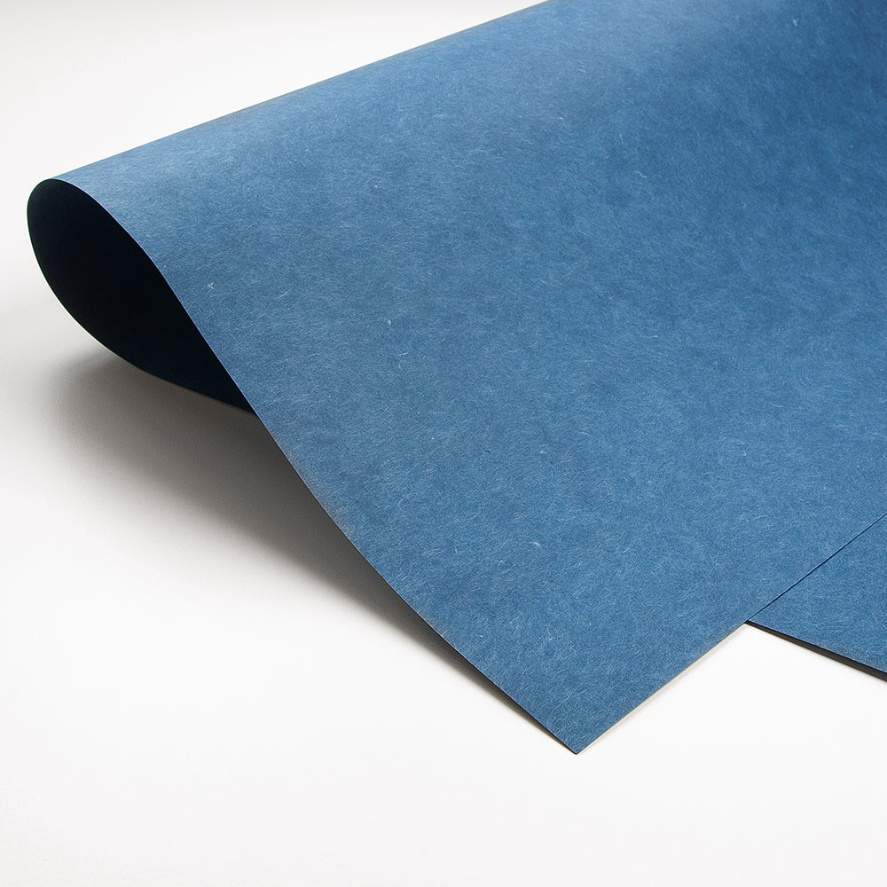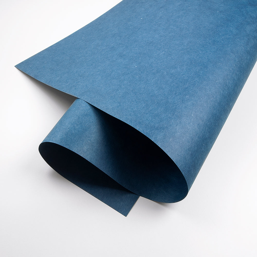 耐光性の高い染料で、靭皮繊維である楮(kozo)とフィリピン雁皮(Fillipino gampi)を紺色に染め、ゆっくりと抄き上げた和紙です。