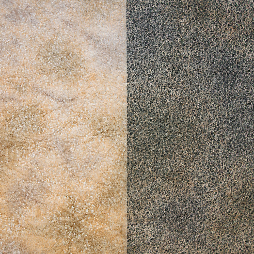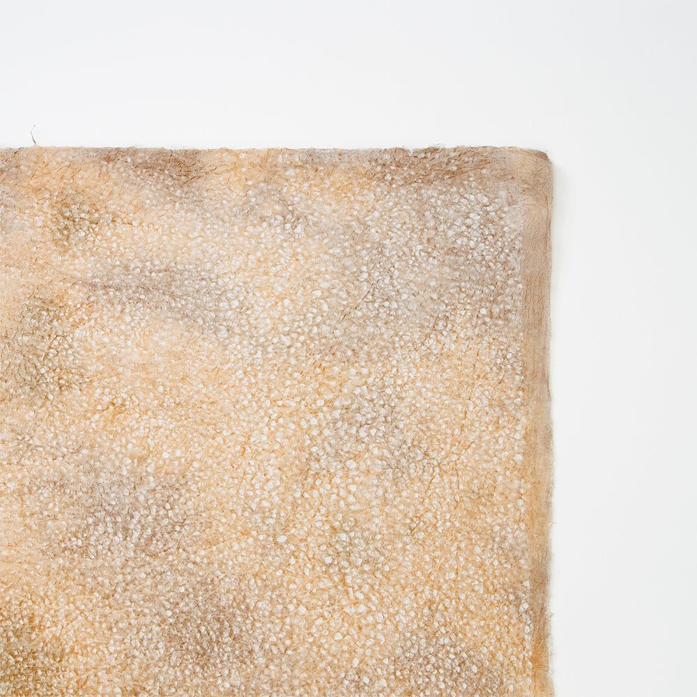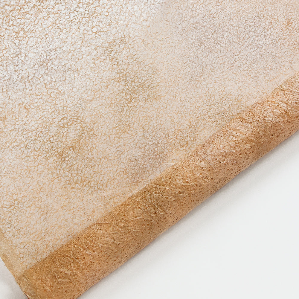 春雨が落ちたような小さな穴があいた紙「春雨紙」。その春雨紙を2〜3色の染料を使って染めました。手でちぎりやすく、「ちぎり絵」「押し花の背景用紙」をはじめ、「ラッピング」や「灯り」など、用途は多様。白のままの原紙もあります。