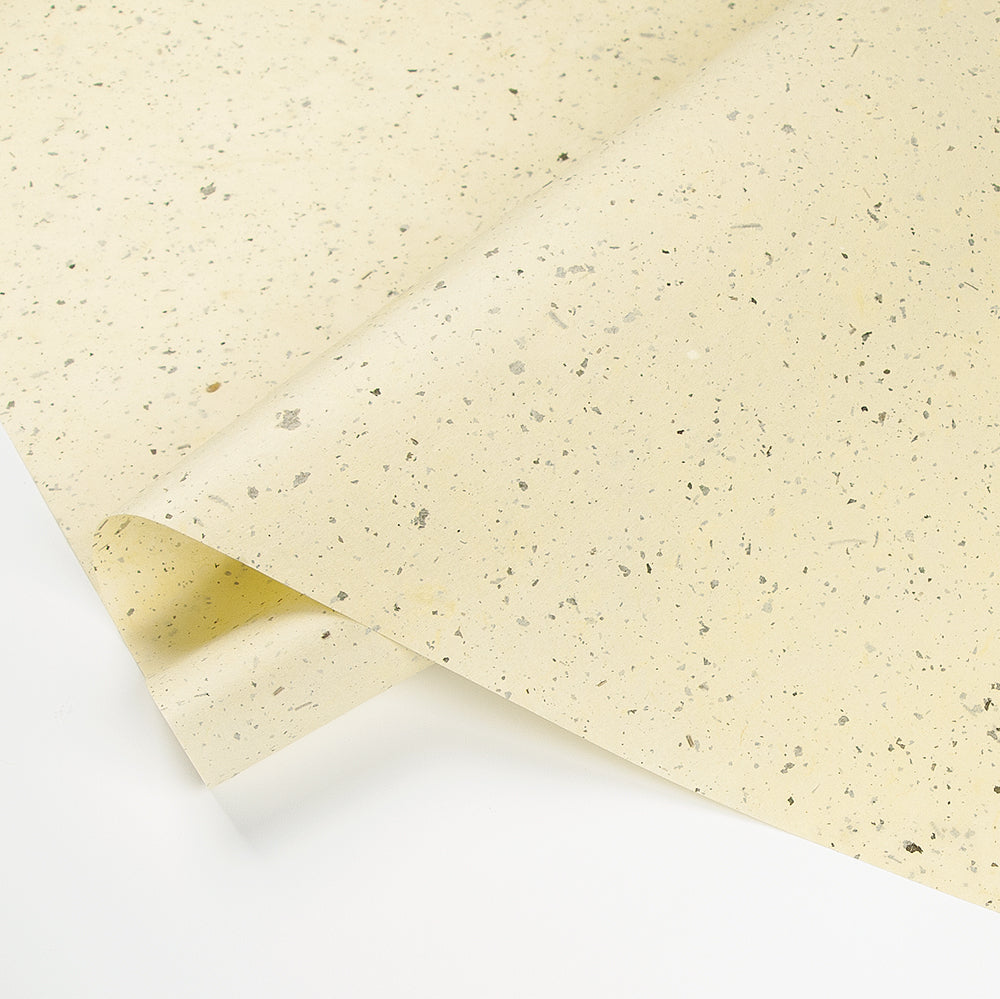 アワガミファクトリーではタイ、ネパールの紙など日本の和紙以外の紙を輸入し、日本でご紹介&販売もしています。 ナチュラルな素材を使った紙、日本人の感覚では思いつかない手法や色使いなどは、私たち和紙製造メーカーとしても とても勉強になります。お互い切磋琢磨して、お客さまに喜んでいただける紙づくりを目指しています。「マルベリー」は、楮の黒皮を漉き込んだ紙です。 タイ製。