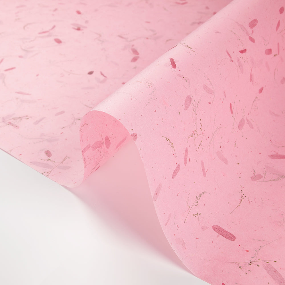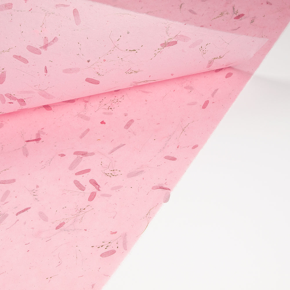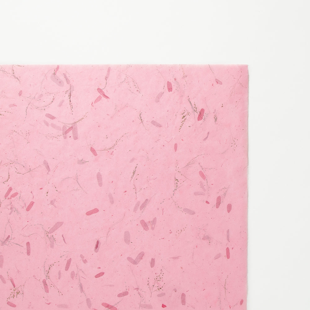 アワガミファクトリーではタイ、ネパールの紙など日本の和紙以外の紙を輸入し、日本でご紹介&販売もしています。 ナチュラルな素材を使った紙、日本人の感覚では思いつかない手法や色使いなどは、私たち和紙製造メーカーとしても とても勉強になります。お互い切磋琢磨して、お客さまに喜んでいただける紙づくりを目指しています。こちらは「タマリンド」の葉を漉き込んだ紙です。 タイ製。