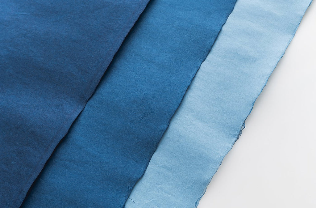 こちらではさまざまな色の濃淡や模様の藍染和紙をご紹介しています。