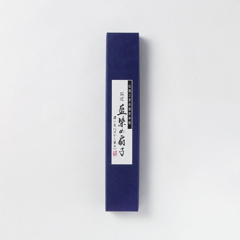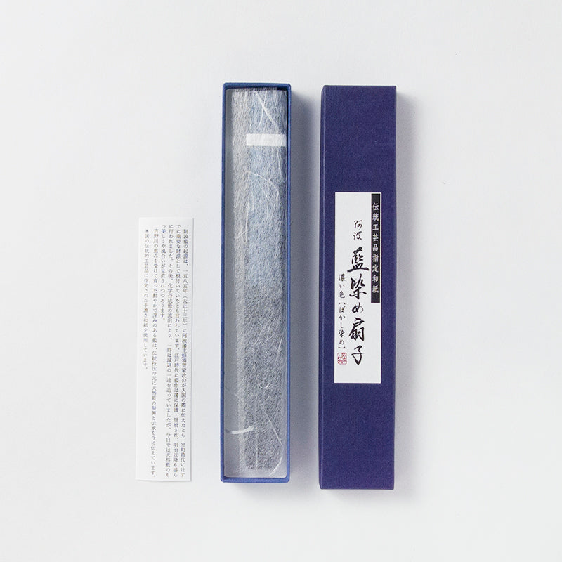 手漉き和紙を阿波藍でぼかし染めにしました。濃い色の濃淡が上品な美しさに仕上がっています。天然の藍で一枚ずつ手染めしているため、色の濃淡や風合いが全て少しずつ違ってきます。