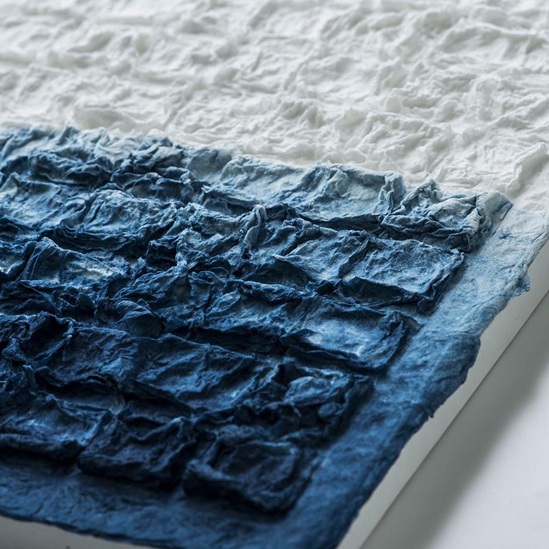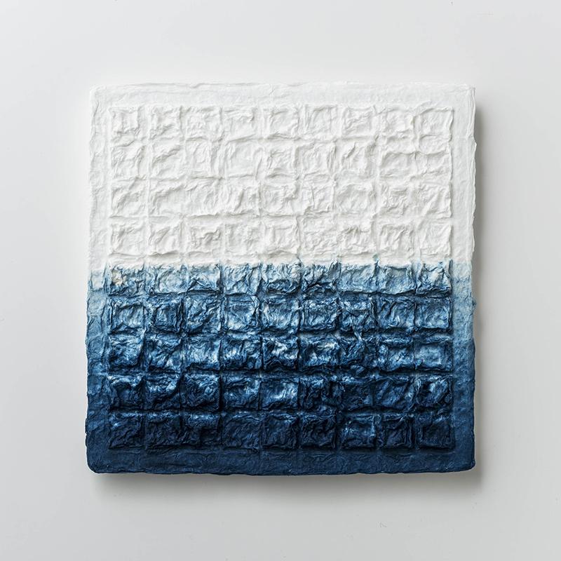モザイクは極厚口の手漉き和紙でできています。有機的なものと幾何学的なものが相互作用し、視覚的にもテクスチャ的にも優れた作品になっています。