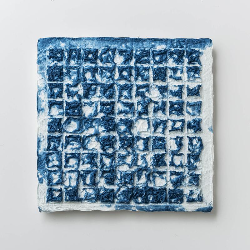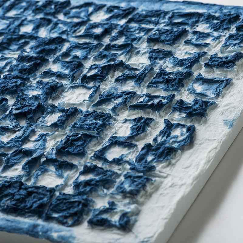 モザイクは極厚口の手漉き和紙でできています。有機的なものと幾何学的なものが相互作用し、視覚的にもテクスチャ的にも優れた作品になっています。
