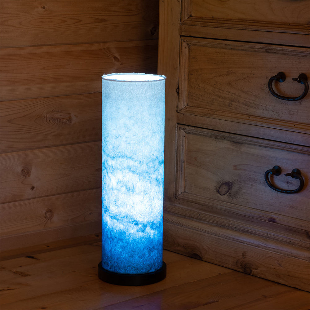 手漉き和紙に藍染を施し、フロアライトに仕上げました。優しい光が上品な空間を演出します。