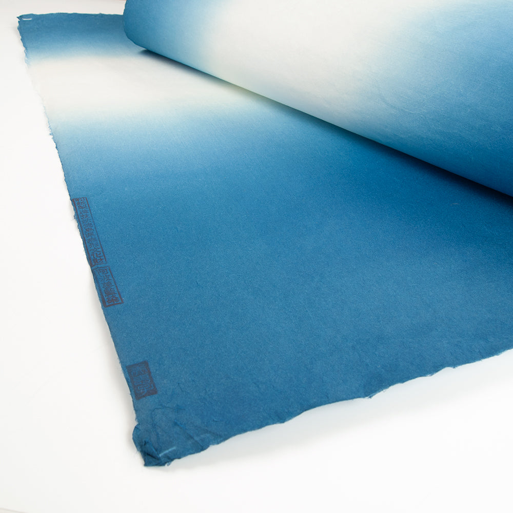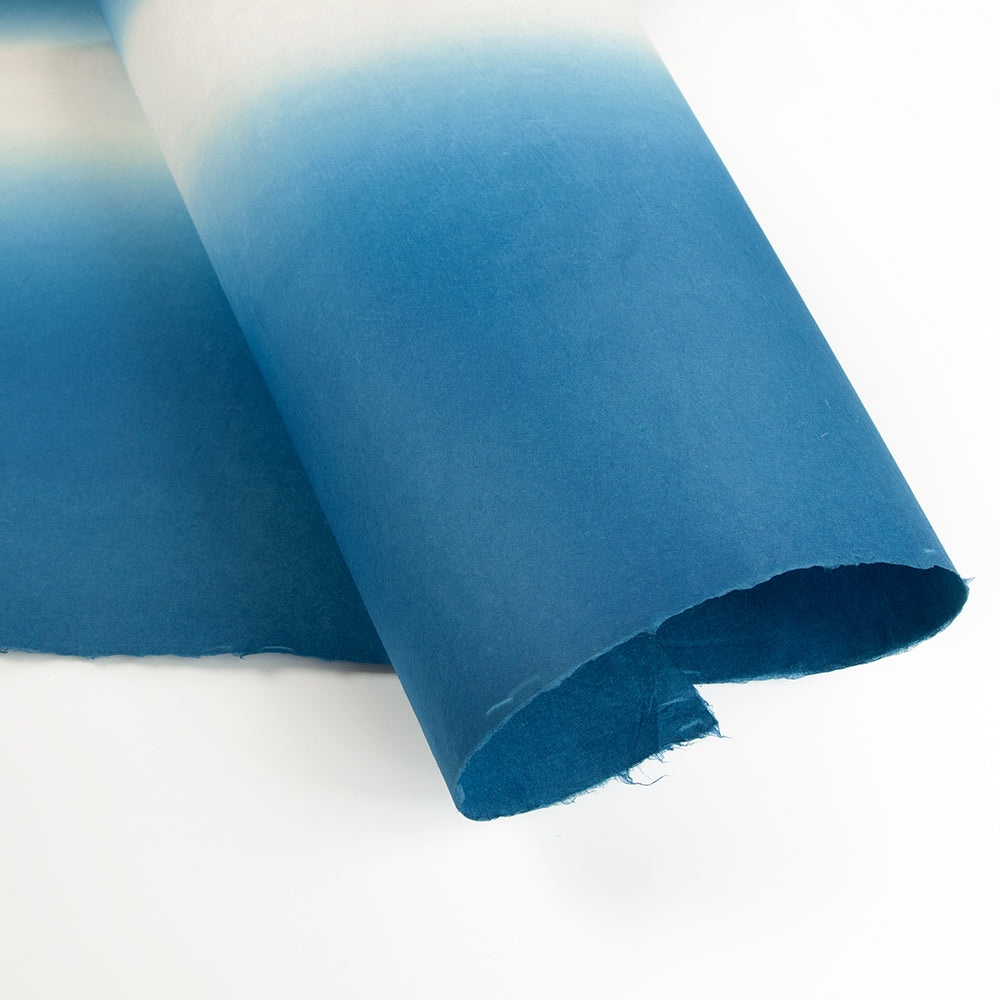 藍染めをする前の原紙も販売しています。→楮三椏紙8匁 こんにゃく引