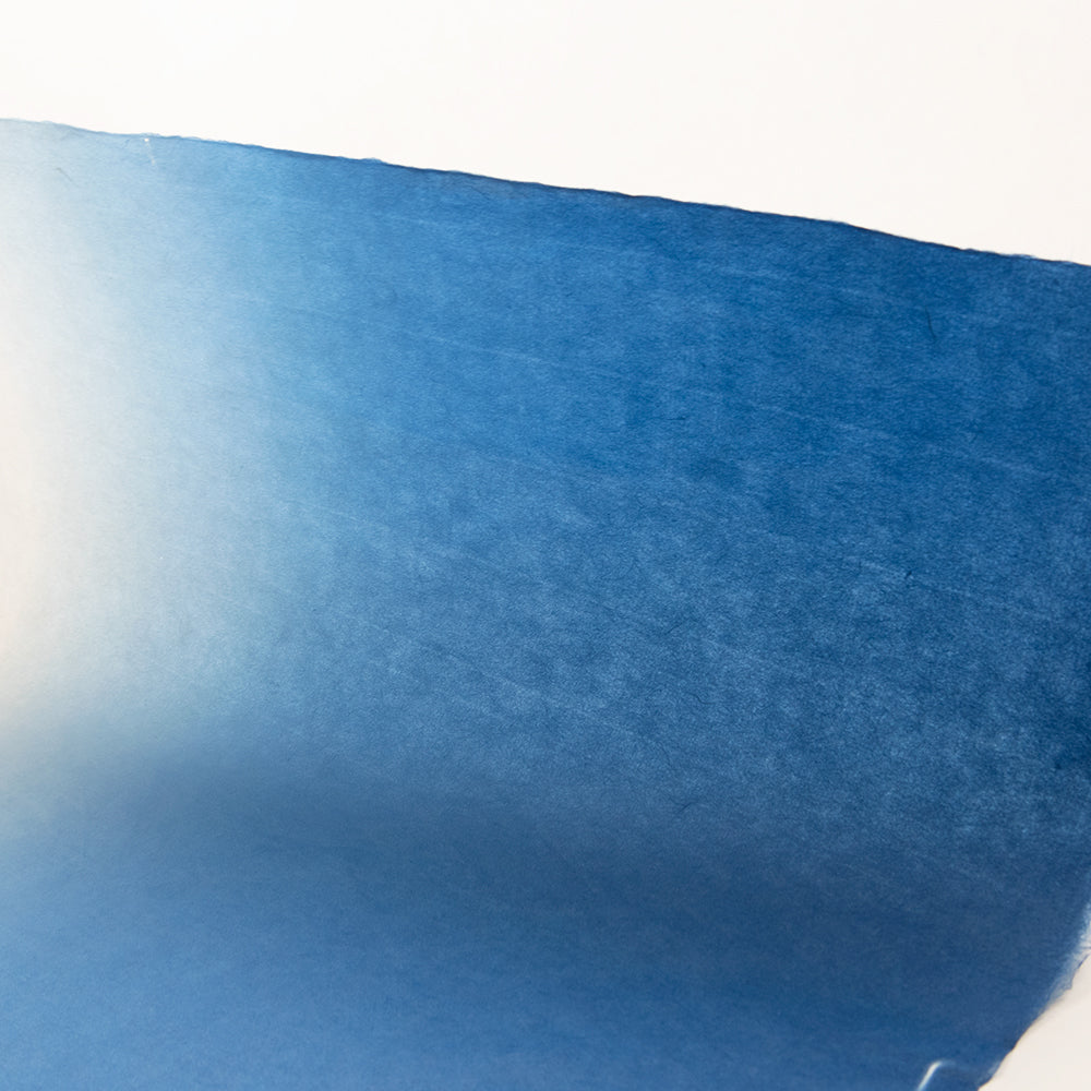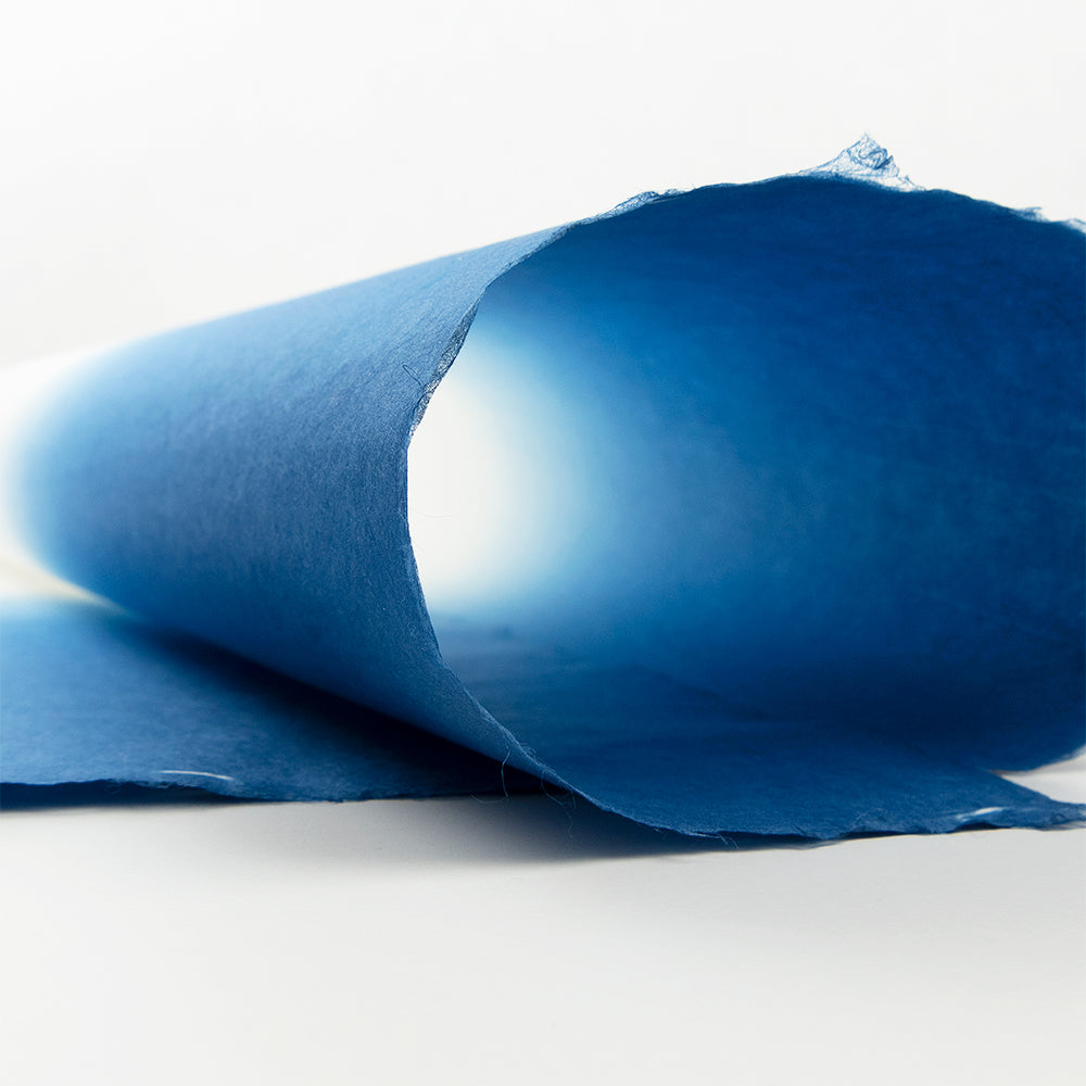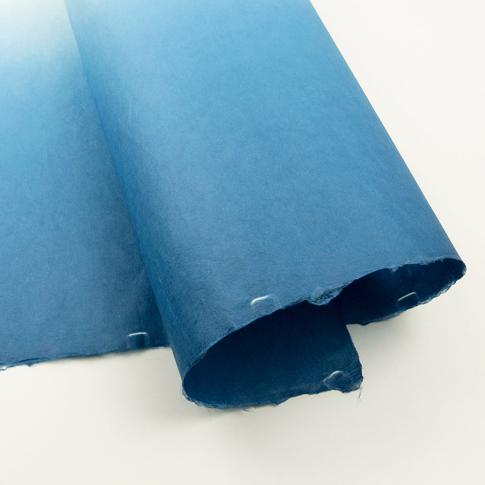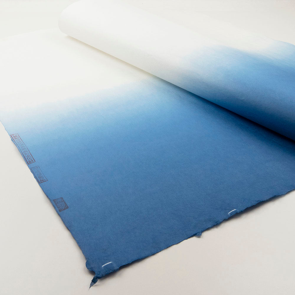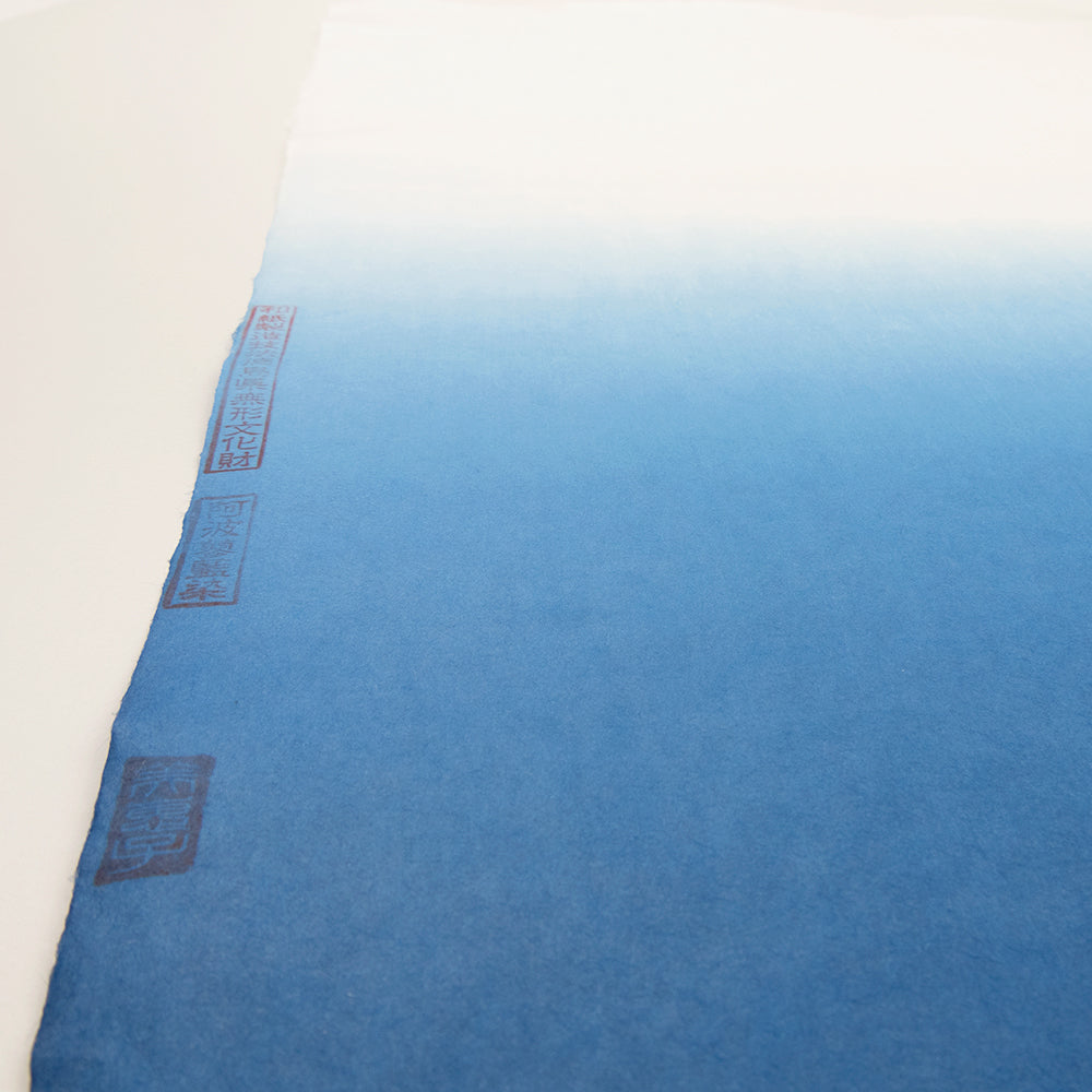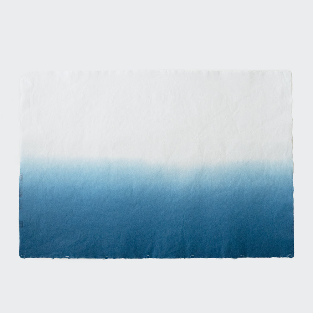 手漉き和紙を阿波藍で染め、美しいグラデーション模様をつけました。書道やドローイングなどのファインアートや、その他様々なアートやデザイン、インテリアなどにお使いいただけます。
