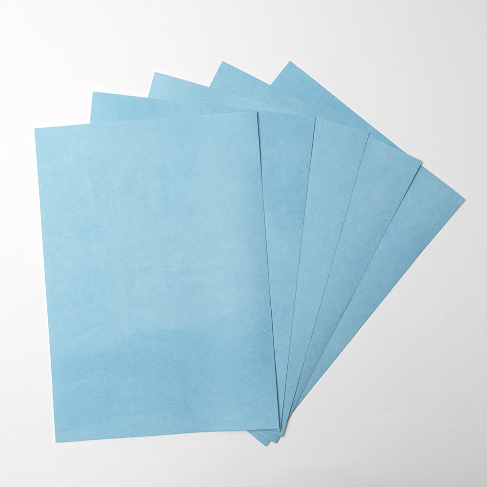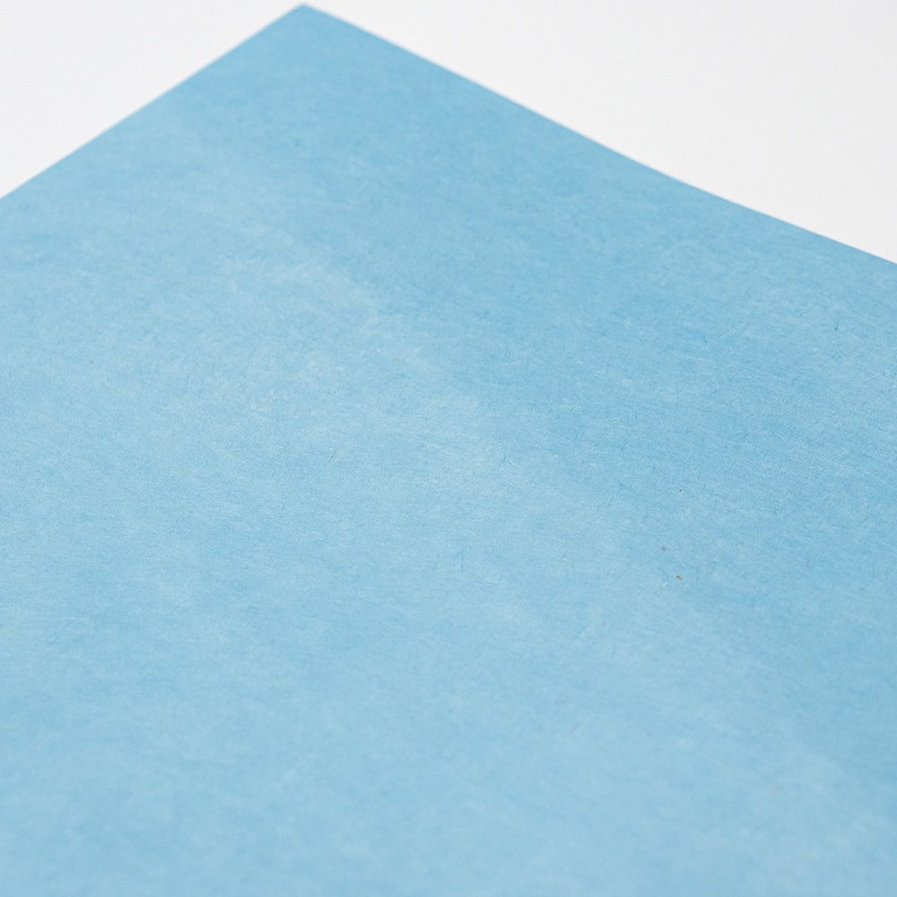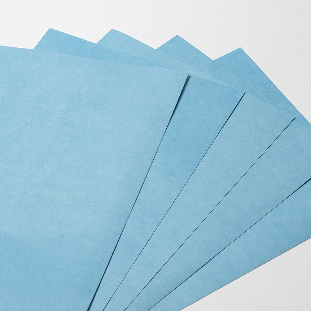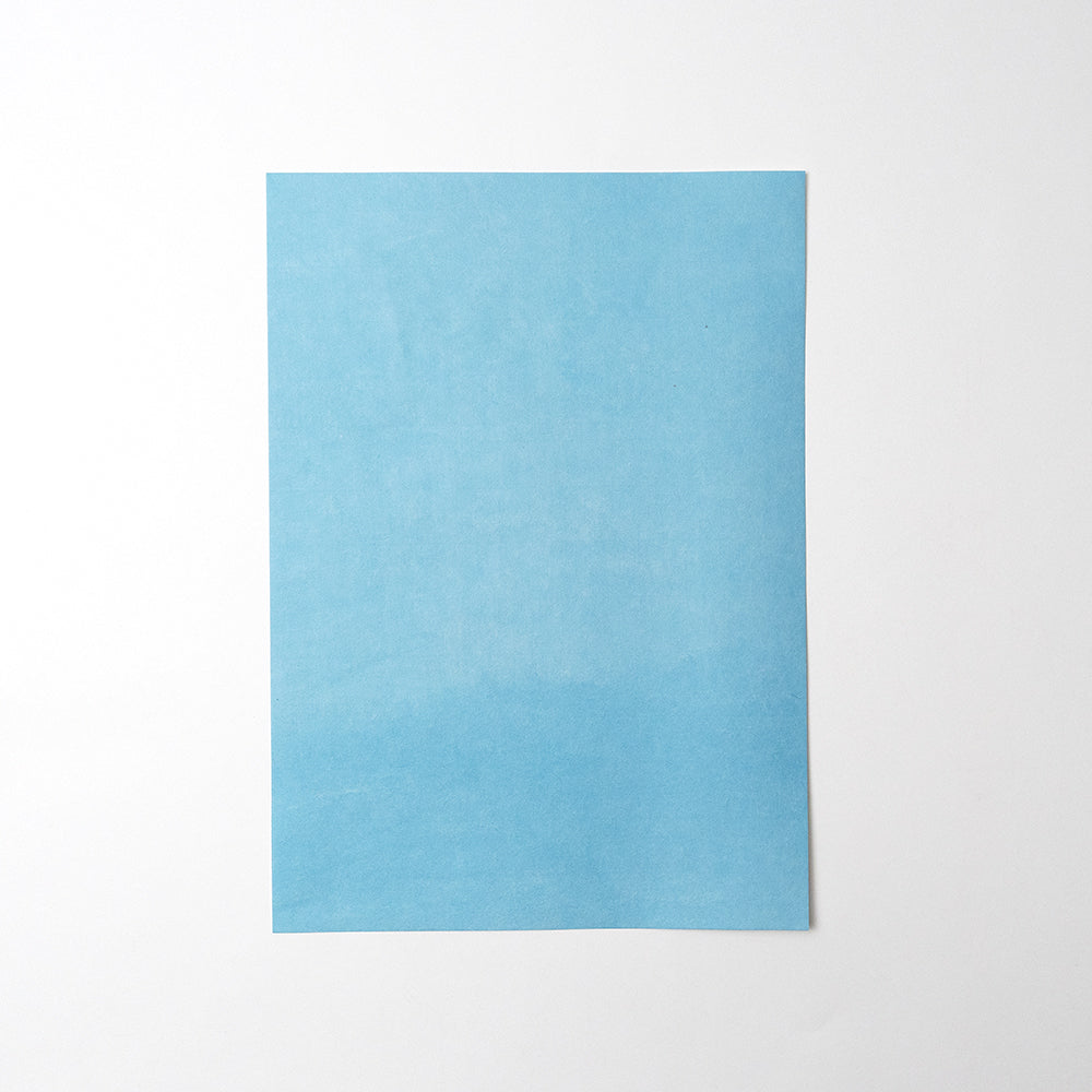 手染めで1枚ずつ丁寧に染めた藍染め和紙を、三層に貼り合わせて厚みを持たせました。もともと、名刺用に作られた紙ですが、大きなサイズのご要望があり、A3サイズもラインナップに加えました。