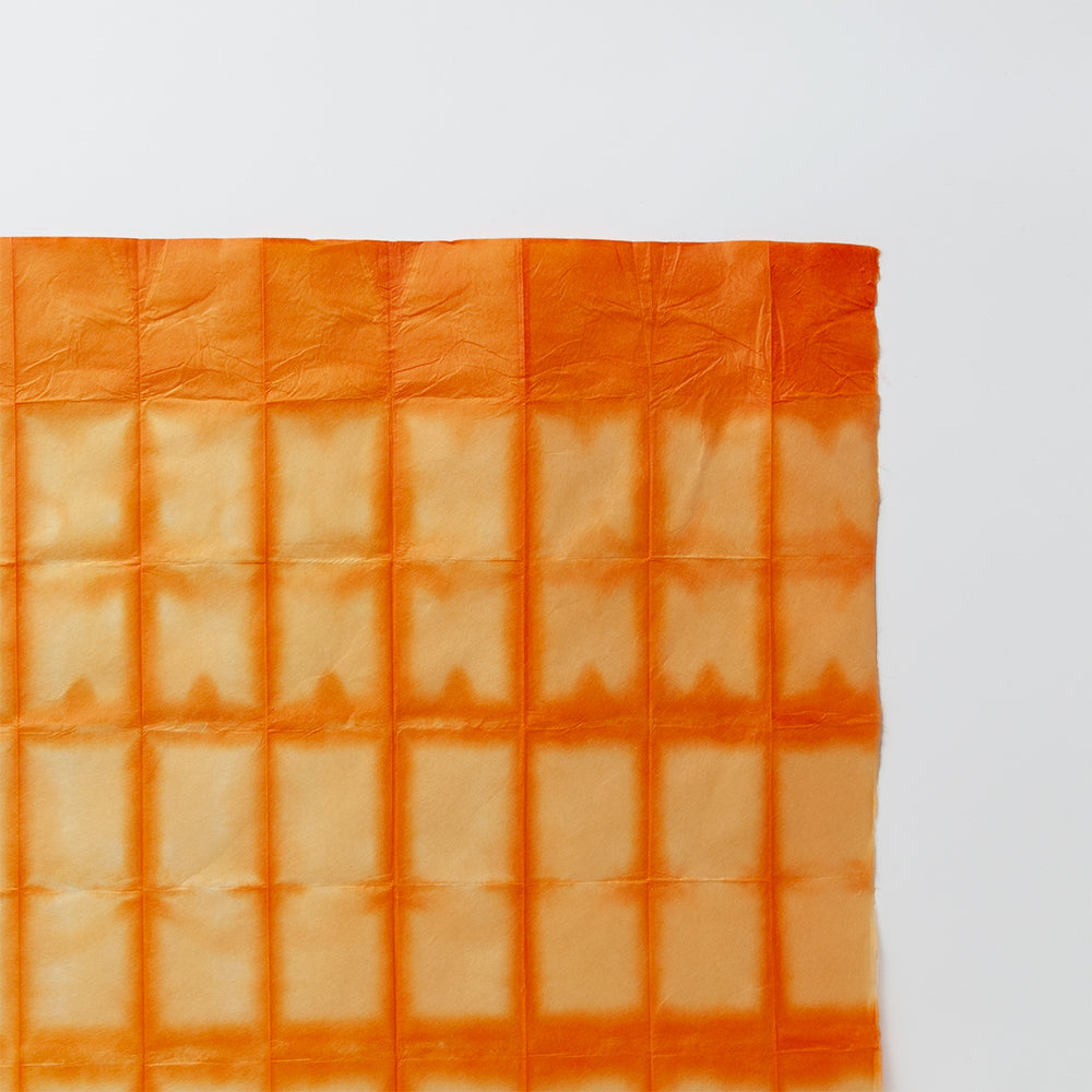 楮紙を一枚ずつ手折りし手染めしました。ちぎり絵や貼り絵に重宝します。