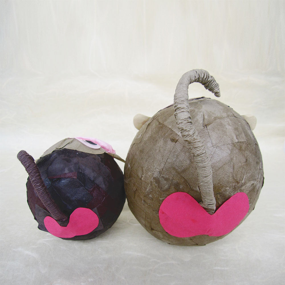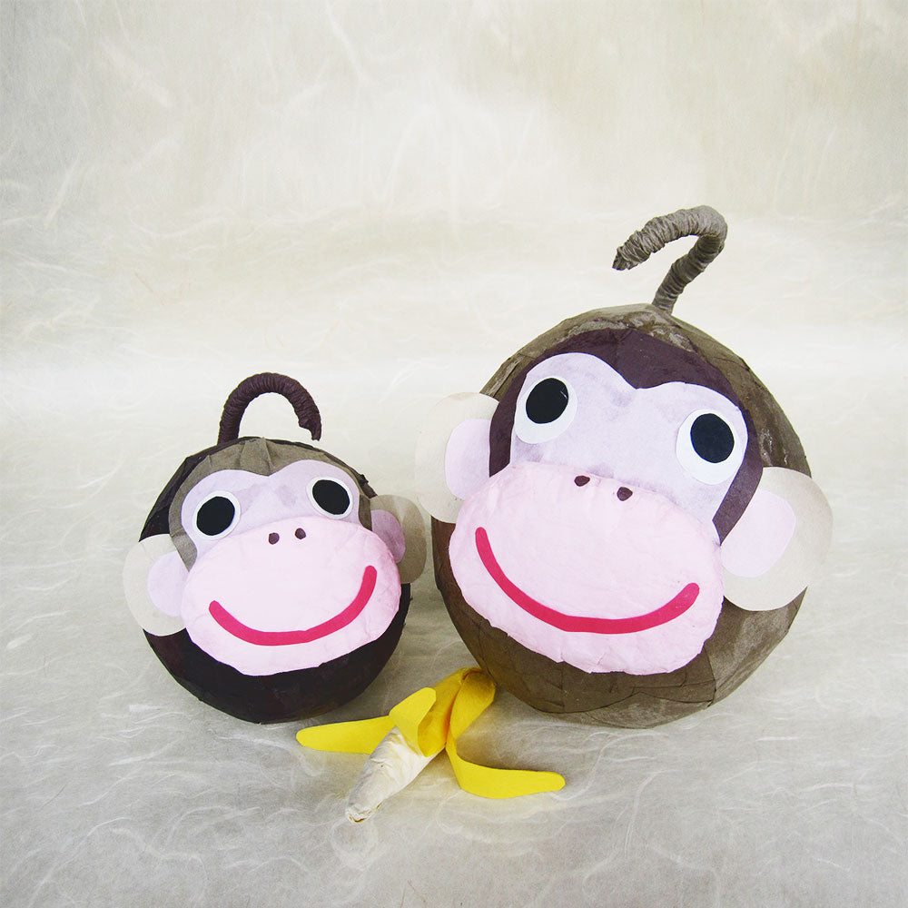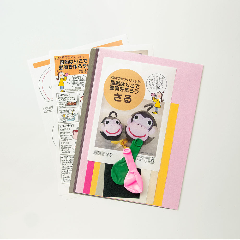 風船を型に民芸紙を使って作る手作りキットです。さるの親子が1匹ずつ作れるセットになっています。