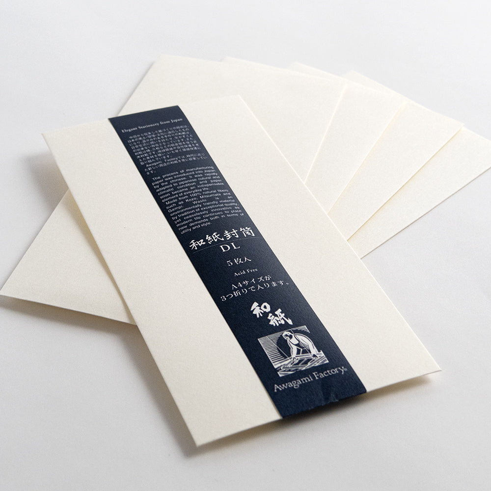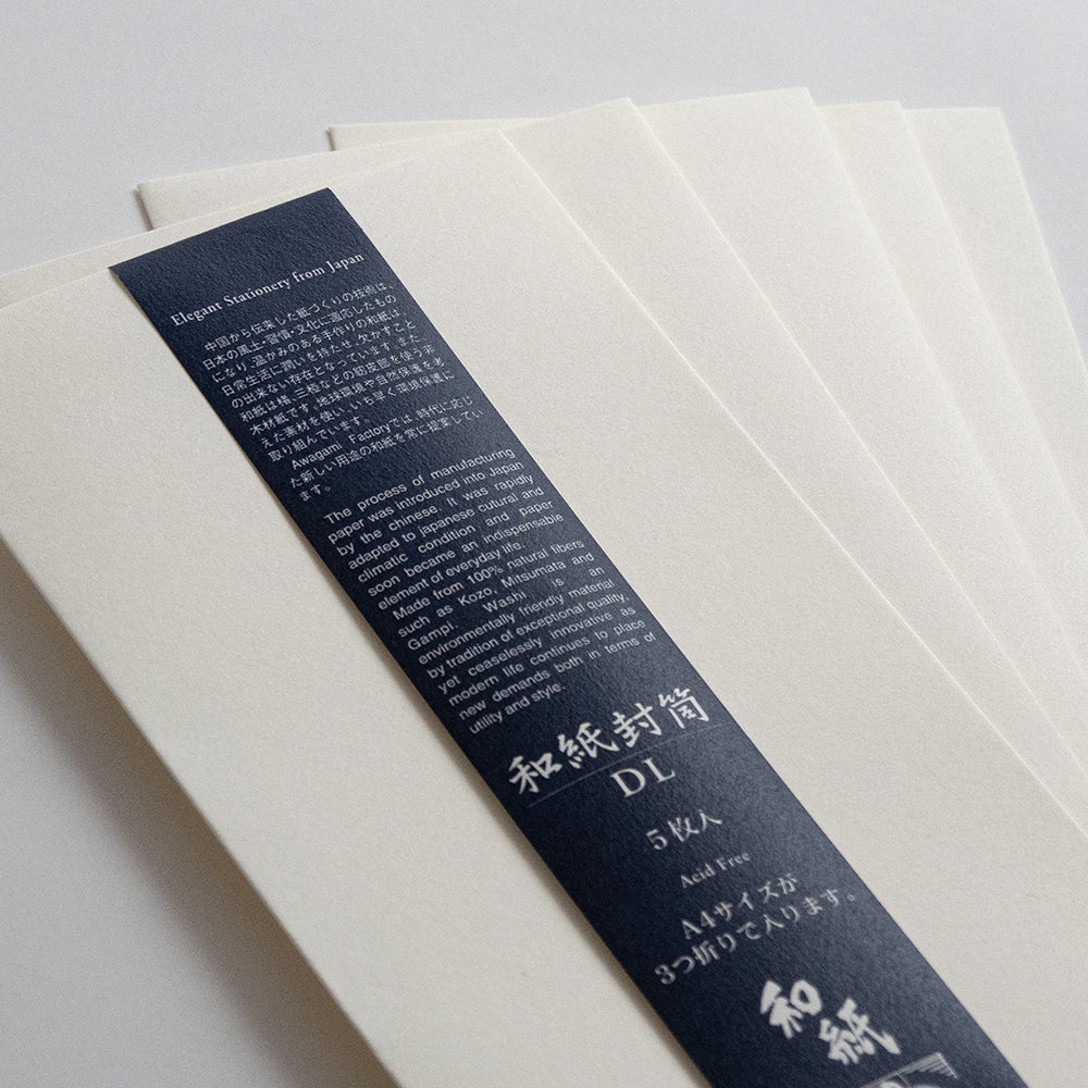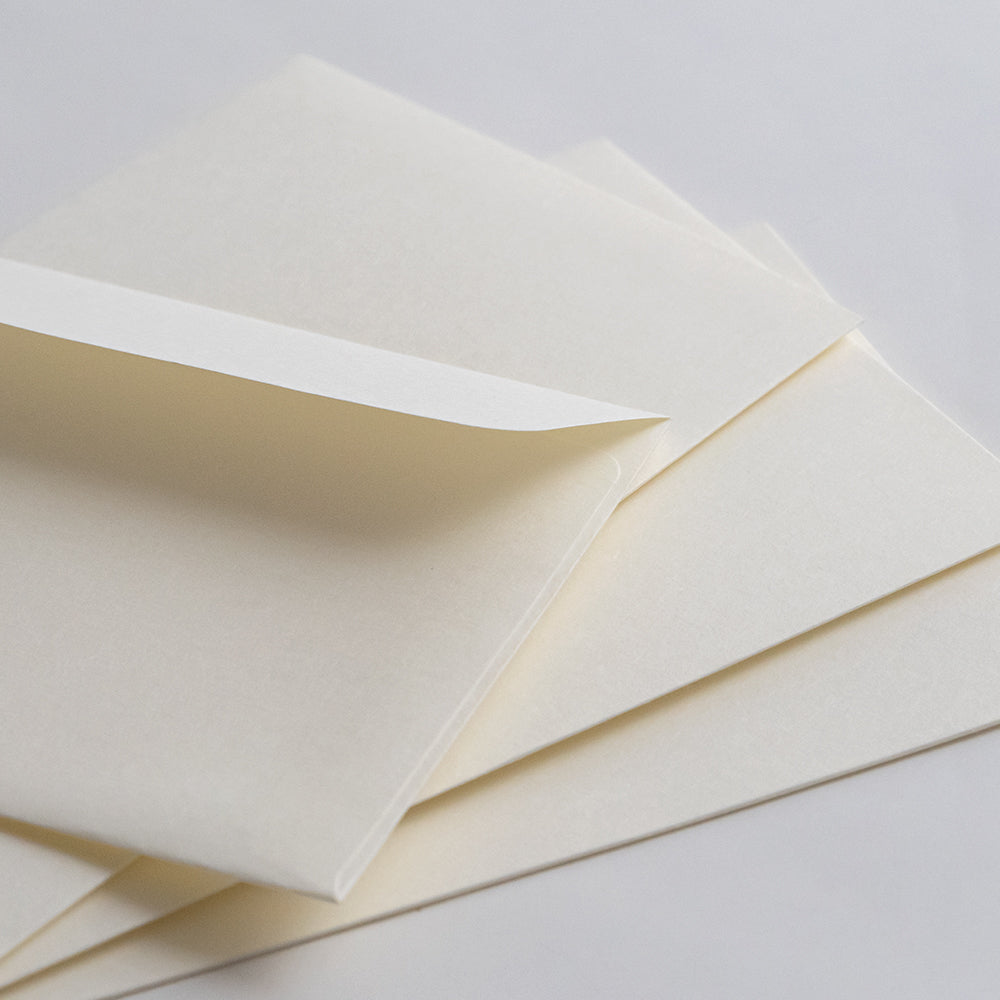 簀の目模様と張りのある質感が特徴の「新いんべ 110 しろ」を、封筒に仕立てました。