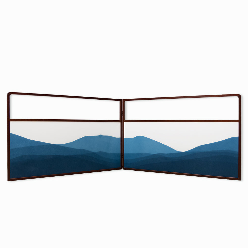 風炉先屏風 藍染め 山並み