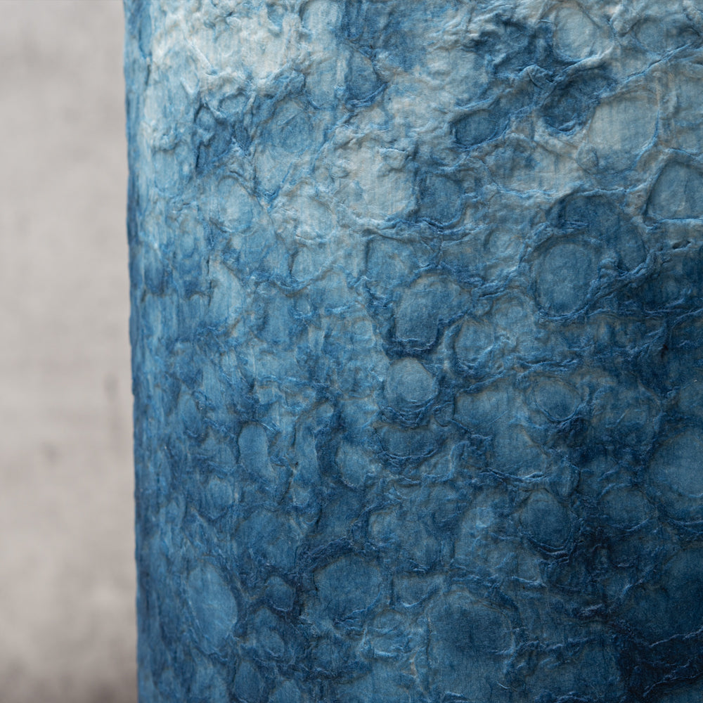 手漉き和紙に藍染を施し、フロアライトに仕上げました。優しい光が上品な空間を演出します。