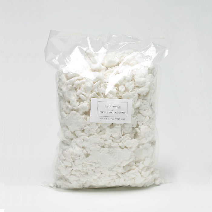 木材パルプ(針葉樹パルプ)のウェット原料。楮に比べて繊維が短く、ハガキ等の厚い紙を漉く場合は、楮原料と混ぜて使うと漉きやすいです。木材パルプだけではがきを漉く場合、1kgで約100〜120枚できます。