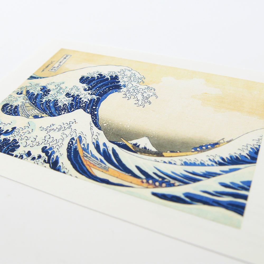 江戸時代後期に活躍した葛飾北斎(1760〜1849)による名所絵で、各地から見られる富士山の景観を描いた『富嶽三十六景』全46図のうちの1つ。 うねる大波のうねりと遠くに鎮座する富士山を描いた構図は静と動、遠近感の描写からなり、「グレート・ウェーヴ」として世界的にも有名な一枚です。