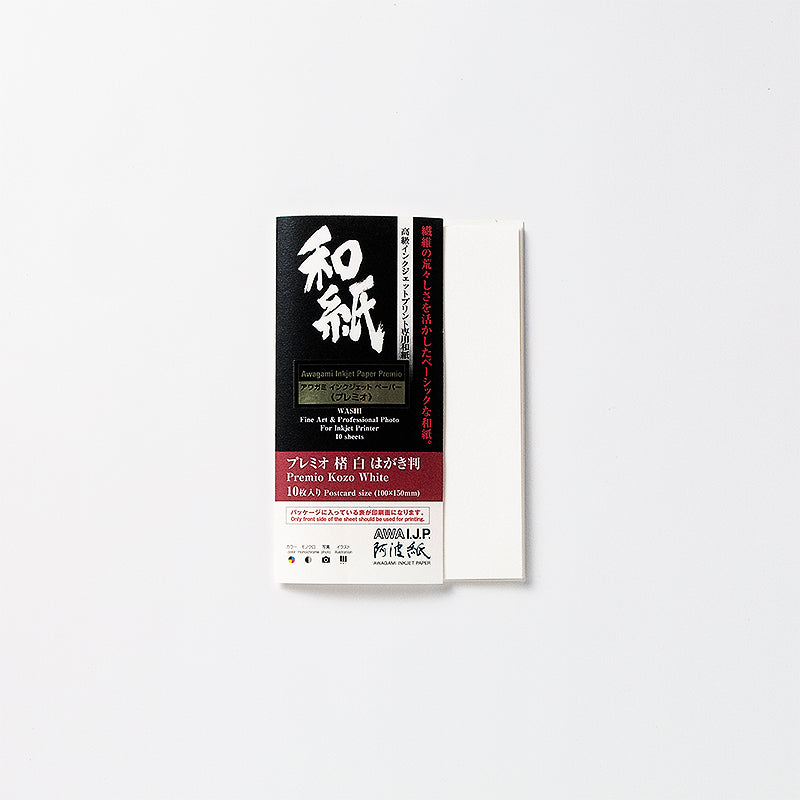 「楮」を表層にし、裏面に「新いんべ」を貼り合わせて厚みをもたせた、インクジェット印刷用和紙です。重量感と強度が増し、印刷中にシワが入る・傷むなどのトラブルを軽減しました。色の裏写りや透け感がなくなり、色彩がより鮮やかでクリアなディテールを表現できます。裏面はコート剤を塗布していないため表に比べて印刷品質は劣りますが、文字程度の印刷は可能です。楮繊維の美しさを生かした「楮」を表層にしました。ポートレートなどの写真、美術作品、イラストなどの印刷に推奨しています。