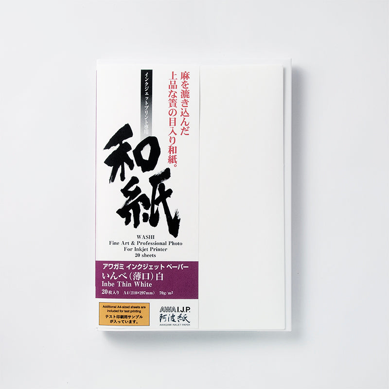 麻と木材パルプを主原料とし、うっすらと入った簀の目(すのめ)が特徴のデジタルプリント用和紙です。 写真やアートブックの制作、美術作品のレプリカなどにお使いいただけます。光を透かした展示方法もお勧めです。 厚口のみ両面印刷が可能です。※ 薄い素材であるため、印字面が多い又は濃度の高いデータの出力はシワがよりやすい場合があります。御了承下さい。