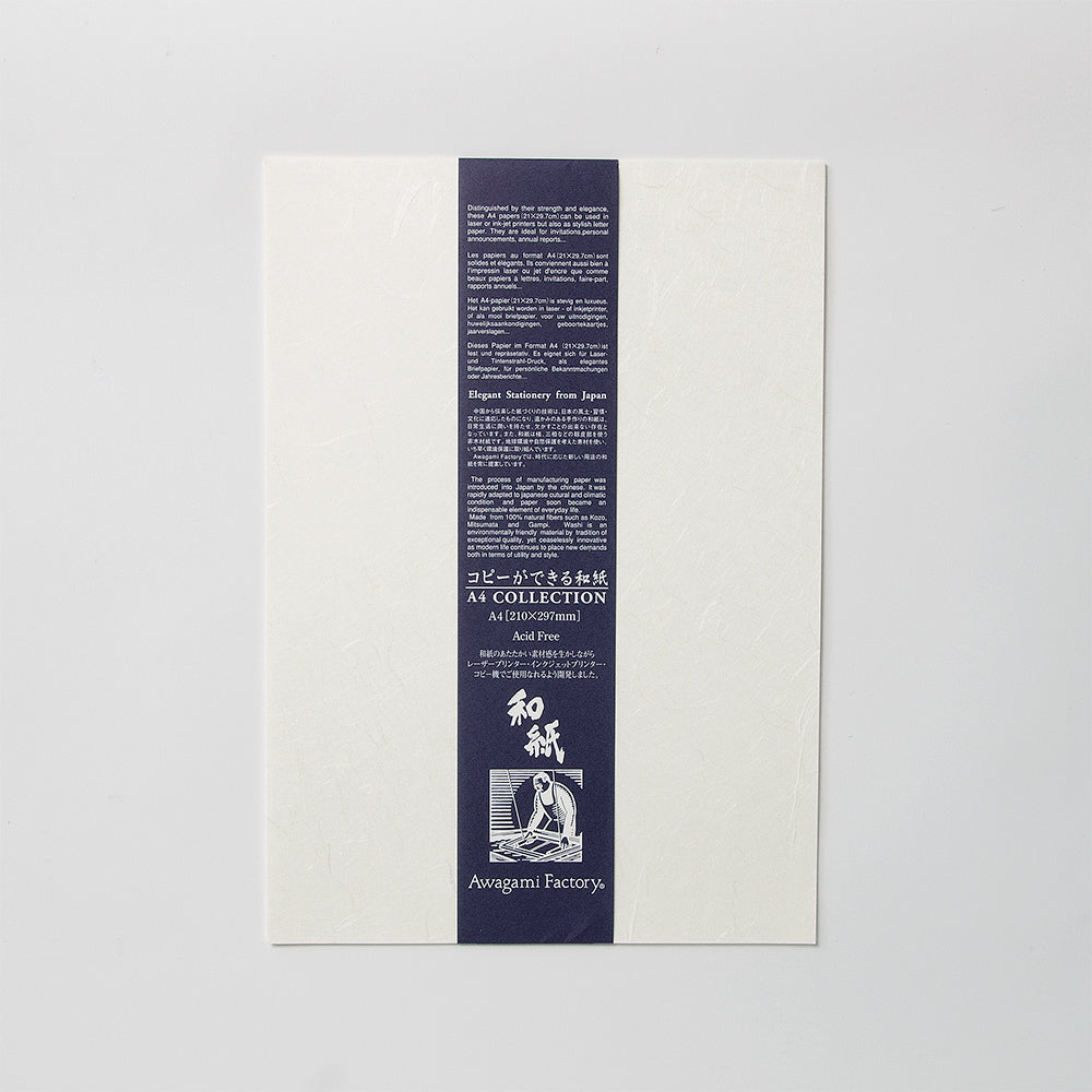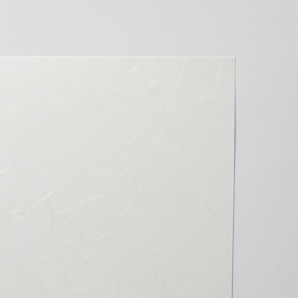 楮の繊維を長いままに残して漉きあげました。水の流れを活かし、雲が流れる様を映した自然な模様は、和紙らしい優美で上品な風合いを感じさせます。柔らかい手触りです。表面は無地。名刺やハガキにご使用いただけます。