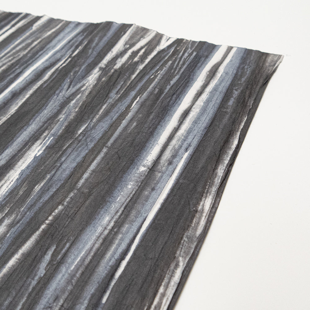 アワガミファクトリーで長年染められてきた「柳絞り染め紙」は、職人が一枚一枚手作業で楮紙を絞ってシワをつけ、刷毛で染めた和紙です。一つと同じものはない、一点ものの柄が特徴です。