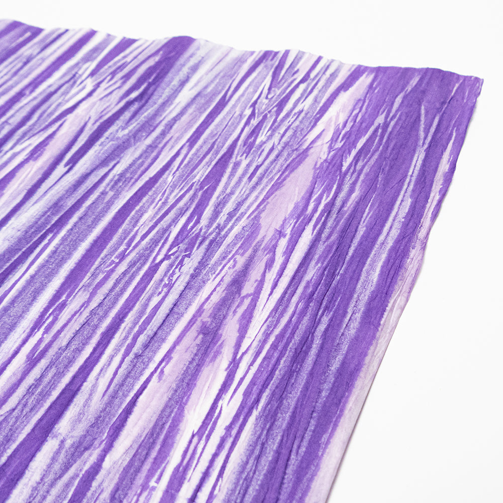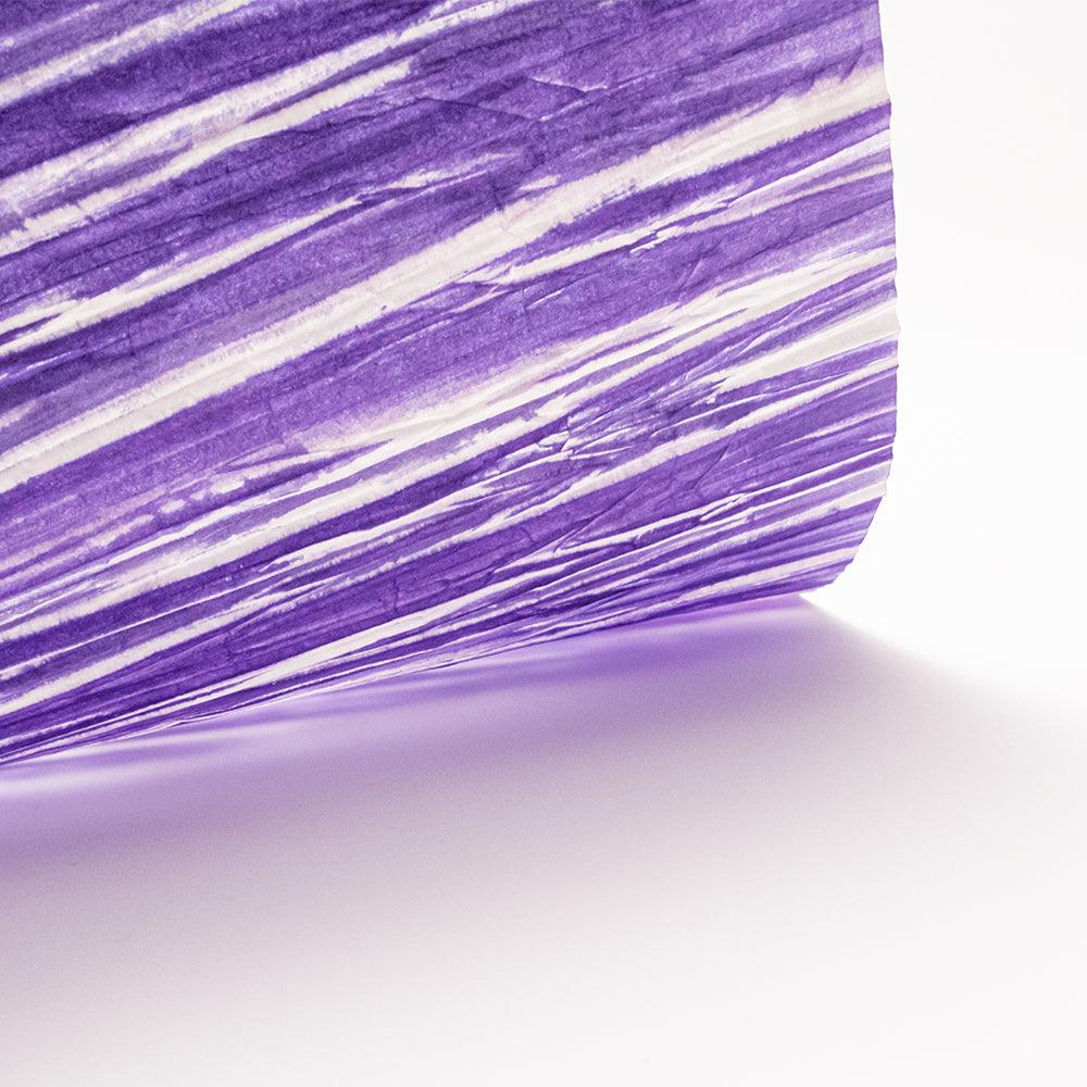 アワガミファクトリーで長年染められてきた「柳絞り染め紙」は、職人が一枚一枚手作業で楮紙を絞ってシワをつけ、刷毛で染めた和紙です。一つと同じものはない、一点ものの柄が特徴です。