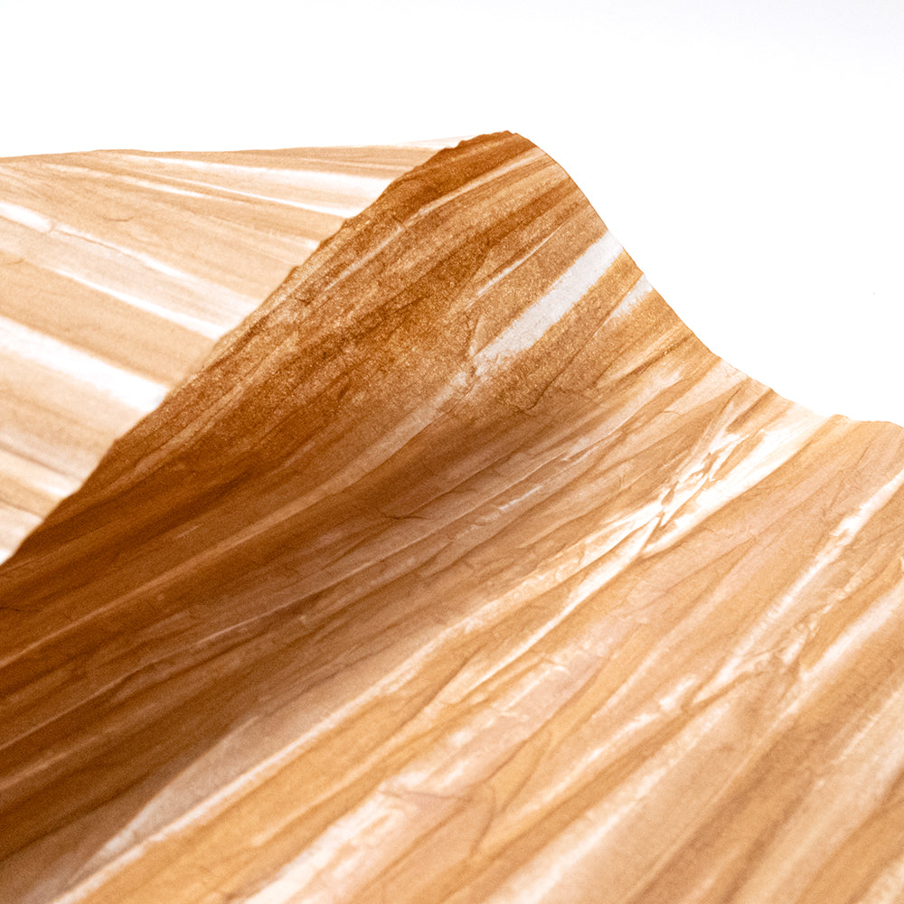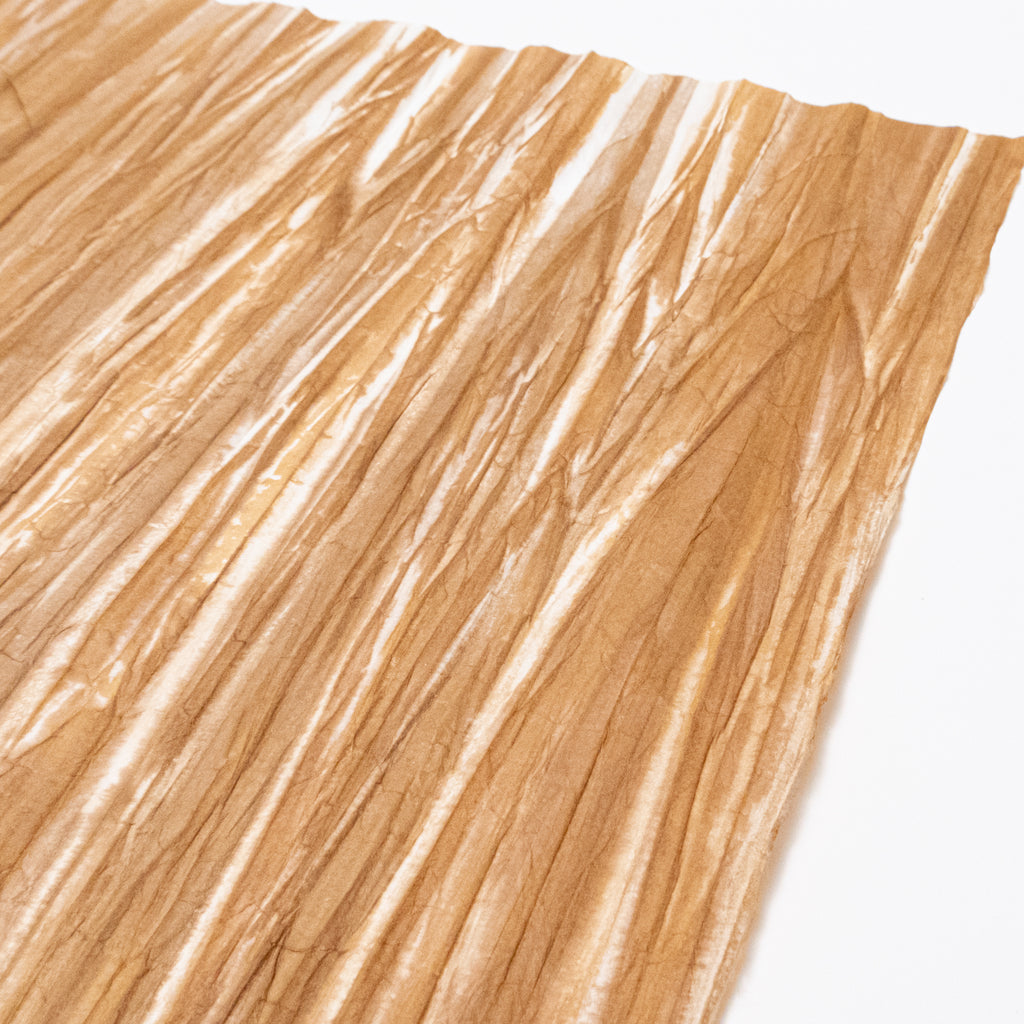 アワガミファクトリーで長年染められてきた「柳絞り染め紙」は、職人が一枚一枚手作業で楮紙を絞ってシワをつけ、刷毛で染めた和紙です。一つと同じものはない、一点ものの柄が特徴です。