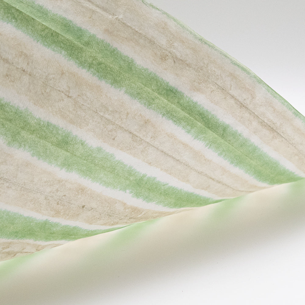 アワガミファクトリーで長年染められてきた「縞染め紙」は、職人が一枚一枚手作業で楮紙を折り、板締め染めの技法で染めた和紙です。