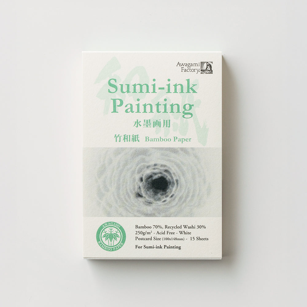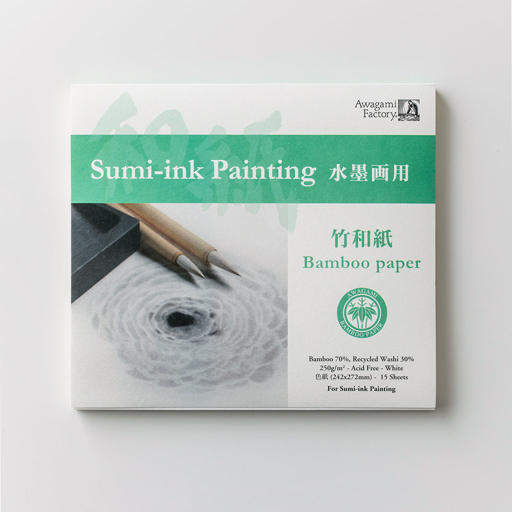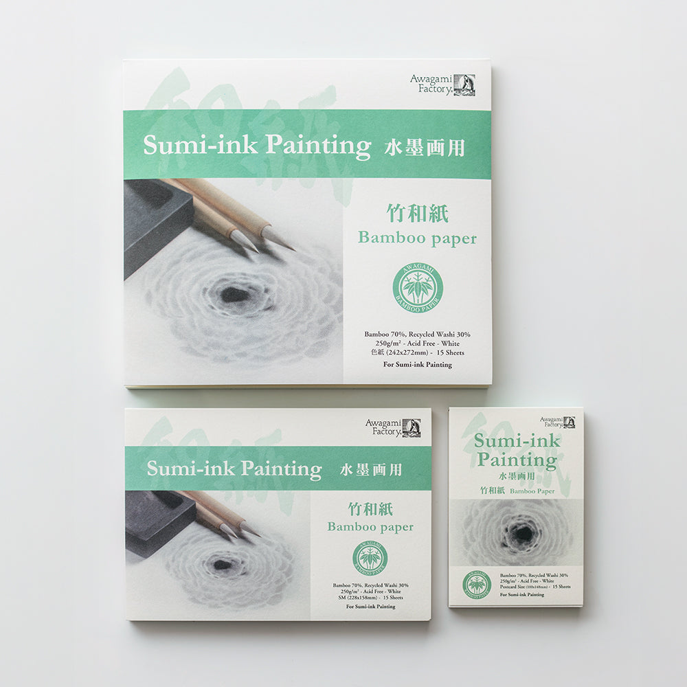 原料に竹の繊維を使用し、墨の吸収の良さと表面の表情を重視した、水墨画専用の和紙を使いやすいサイズのアートパッドにしました。