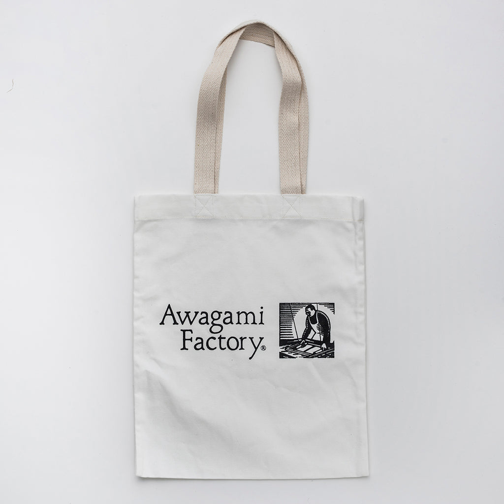 アワガミファクトリーのロゴをあしらった、布製のトートバッグです。