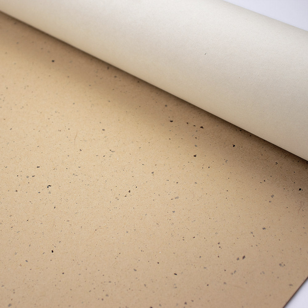 「塵」シリーズは、枯淡の味わいを持ち、侘び寂び調のしつらいに最適です。天然素材をふんだんに用いた個性を持つ和紙壁紙です。準不燃加工及び裏打ちを施し、機能性にも優れています。和紙クロスとしてロール状でご提供いたします。