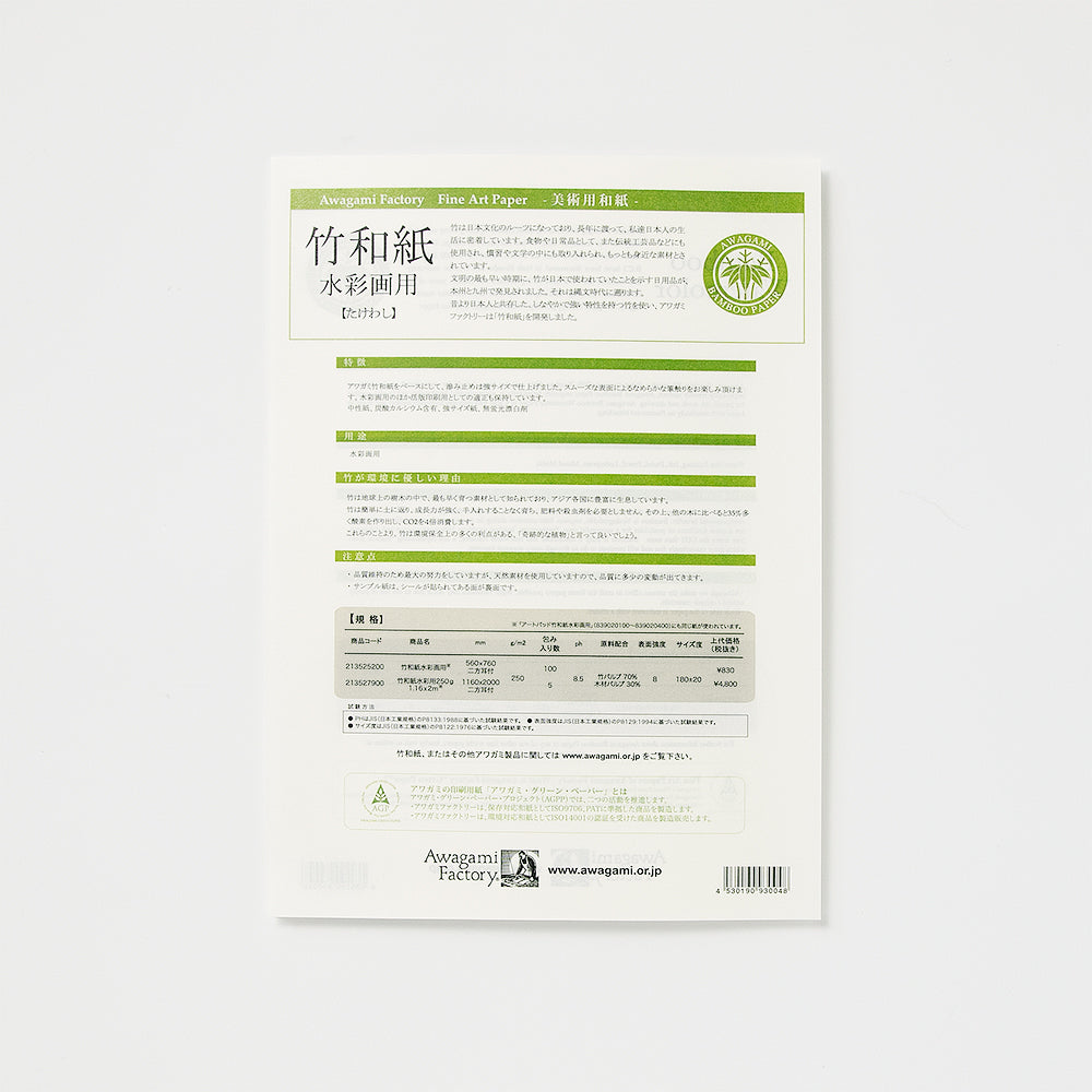 環境に優しい竹を原料にし、水彩画用に特化した「竹和紙 250g(水彩画用)」の質感をお試しいただけるサンプラーです。