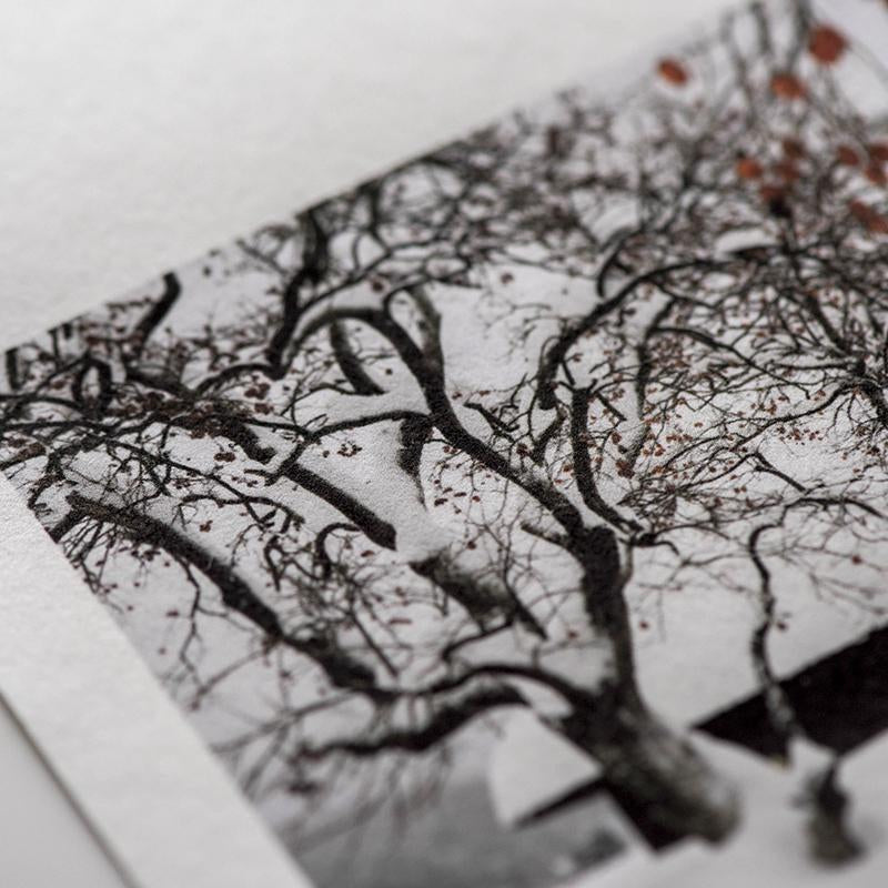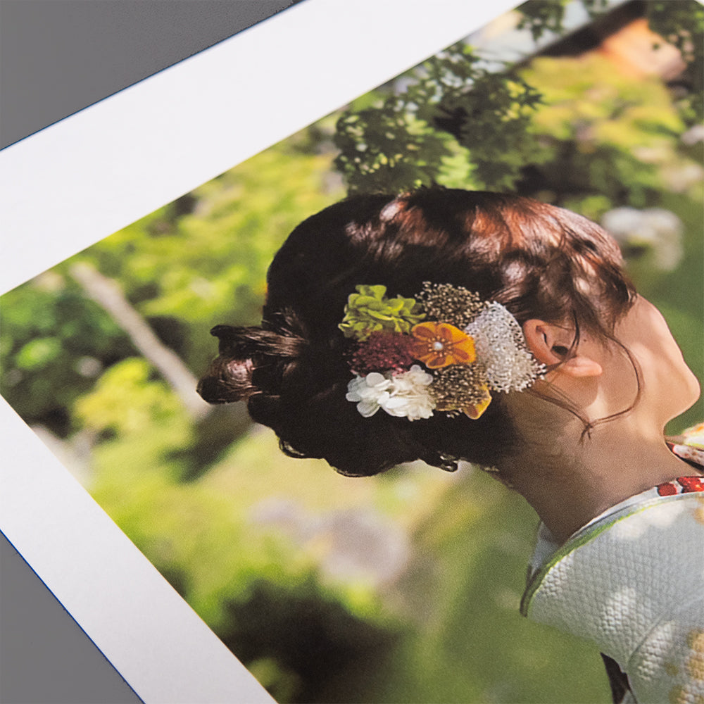 光沢紙などのプリントに比べ、和紙へのプリントは、発色が沈んだり濃度が締まりにくかったりすることがあります。