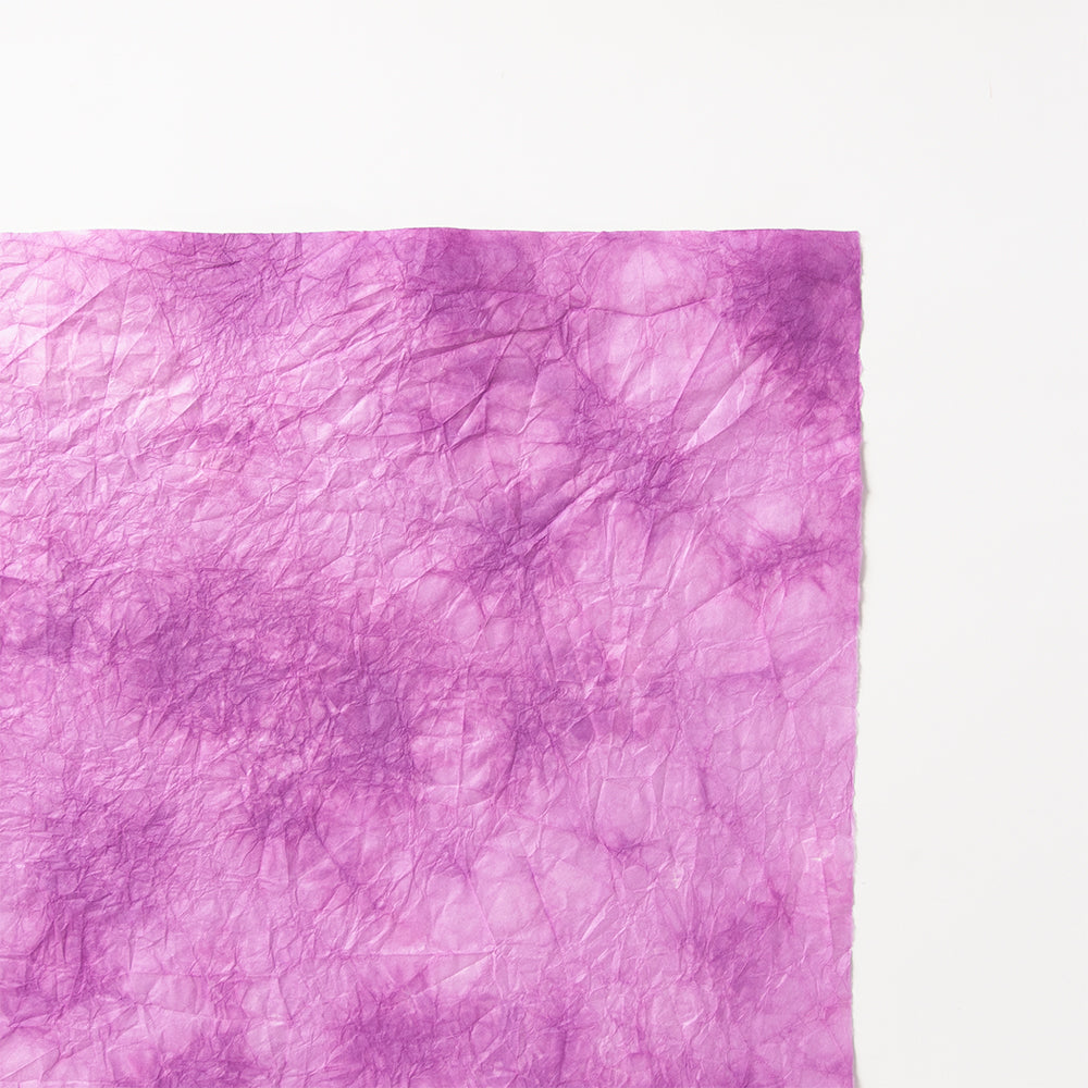 「もみ染紙」は、和紙を一枚一枚、手でもみ、2〜3色の染料に浸け染めした和紙です。自然にできる色の混じり具合が魅力の紙です。一枚一枚、同じ模様がないので、写真とまったく同じものはできません。もんだ紙のため、紙のサイズには、多少の誤差がございます。切り取る場所により、全く印象が異なります。もんだ紙は、貼ったりちぎったりする作業もやりやすく、クラフトやちぎり絵、貼り絵などに活用されます。*手染めのため、ロットごとに色目に差が生じることがありますがあらかじめ御了承下さい。※こちらの和紙は、常時在庫をしておりません。在庫切れの場合、お届けまで一週間から二週間程度お時間を頂きます。ここに掲載以外の色目をご希望の方はこちらからお問い合わせください。※モニターで見る色は実物の色とは差があります。ご了承下さい※